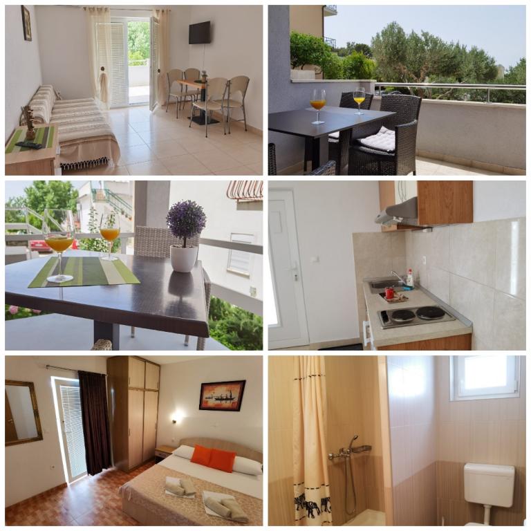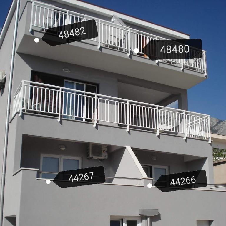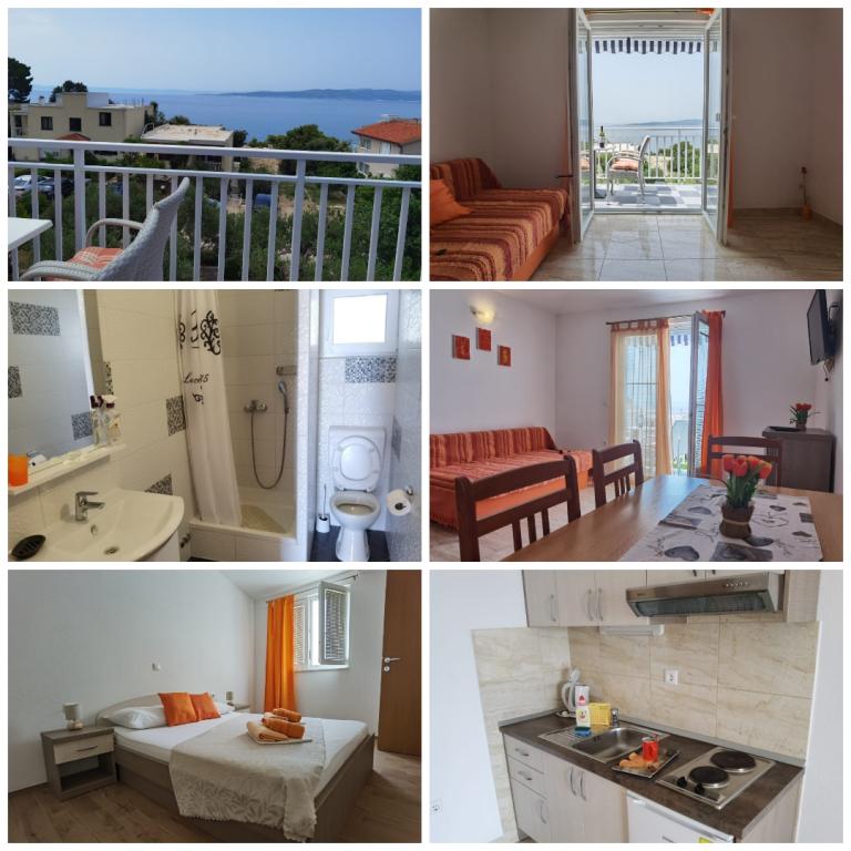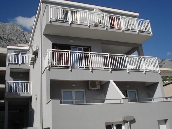 Popolnoma opremljeni apartmaji v mirnem delu Baške Vode. Do plaže in morja je le minuta hoje. Poleg morja in plaže se ponujajo čudoviti pogledi na otoke Brač, Hvar ... goro Biokovo. Vabljeni in želimo vam prijetno bivanje.