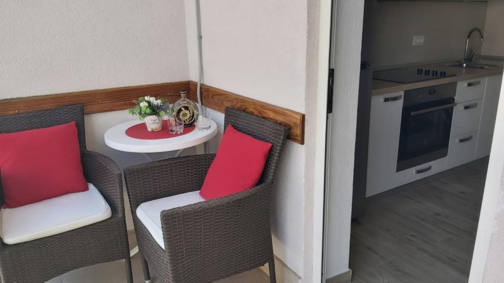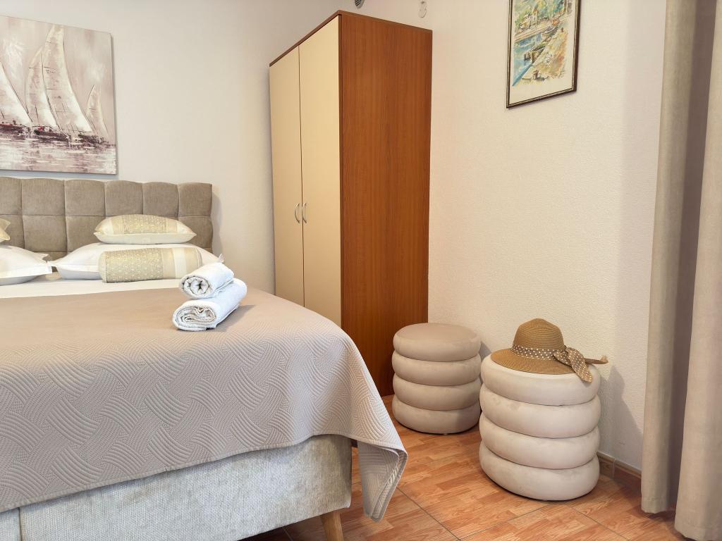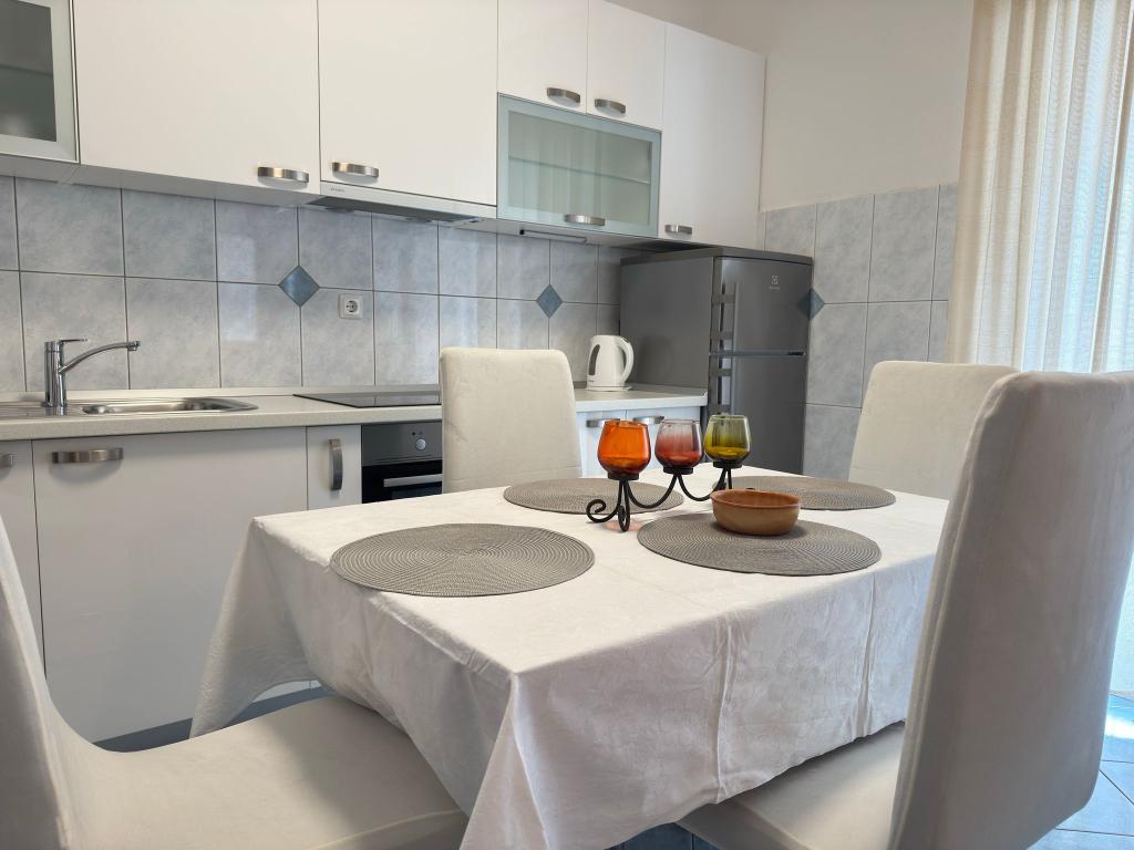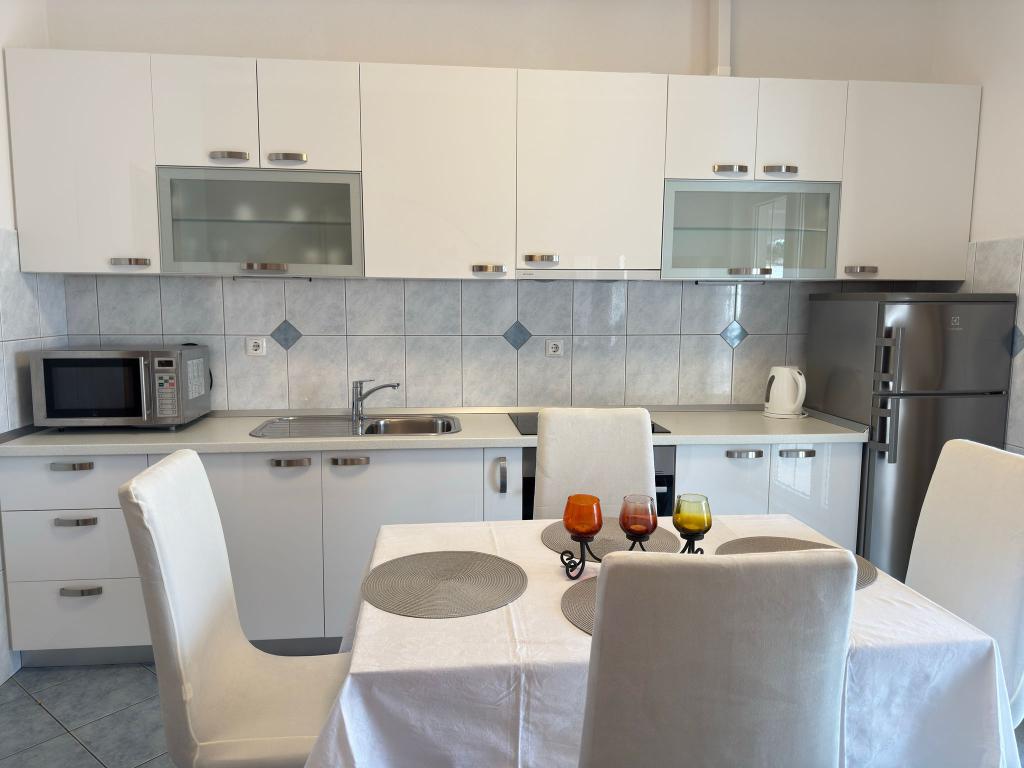 Zelo lepo stanovanje s pogledom na morje. Velika kuhinja z opremo. Velika terasa. Blizu pristanišča in plaže, 5 minut hoje. V bližini je zdravnik, pekarna in trgovina. Zelo prijazni in ustrežljivi lastniki. Ob 5. uri zjutraj so prišli k nam, da bi se poslovili. Stanovanje ima parkirna mesta. priporočam
