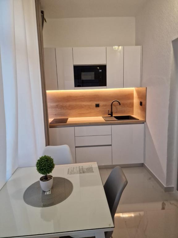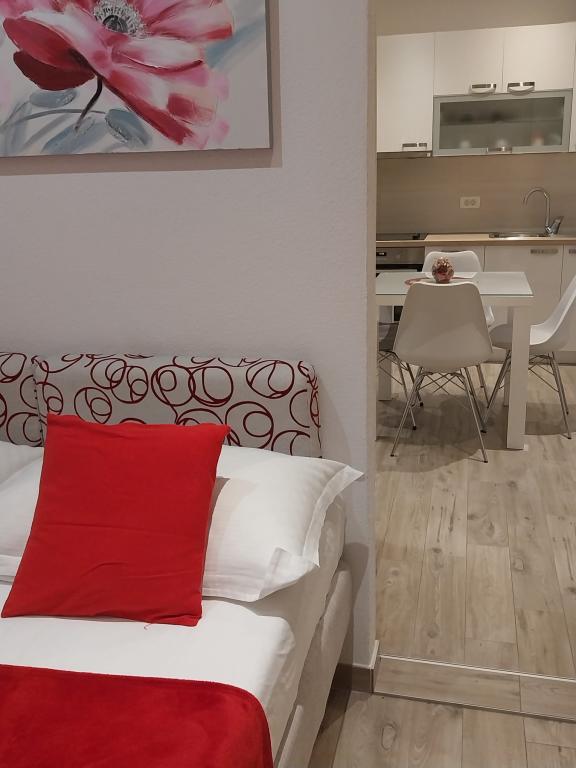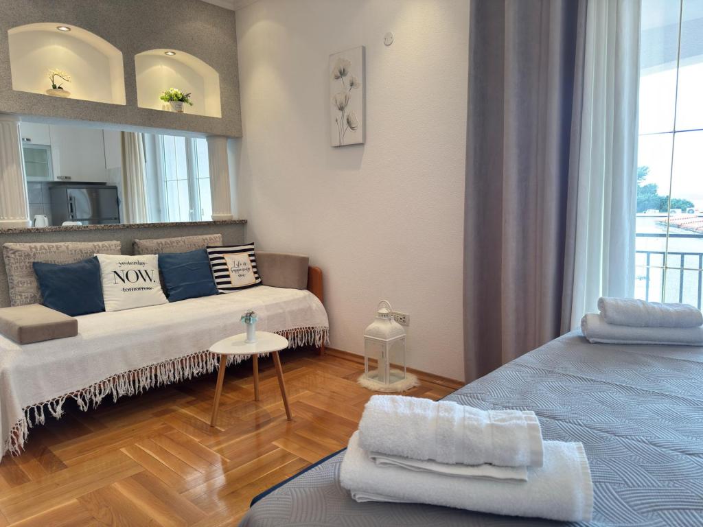 Nahajamo se v centru Baške Vode, vendar v mirnem predelu stran od poletne gneče. Ponujamo vam udobno urejene apartmaje, moderno opremljene in popolnoma opremljene za vaš brezskrben in prijeten oddih. Poudarjamo bližino morja in plaže, ki je okrašena z Modro zastavo!