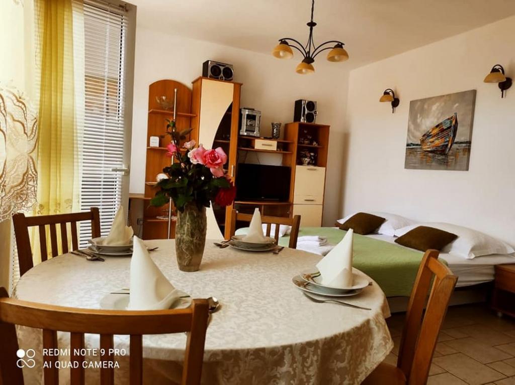 Apartmaji Tema so idealna izbira za vaše počitnice. Nahajamo se v eni izmed najbolj priljubljenih turističnih destinacij hrvaški - Baška Voda. V mirni in zeleni oazi le deset minut hoje od plaže in v bližini vseh pomembnih objektov (restavracije, trgovine, klubi, pošta, banke, itd). V velikih dvorišče gostje lahko uporabljajo žar. Družina vzdušje, majhno darilo za dobrodošlico in veselo hostesa so vam na voljo. Ali iščete kraj za miren družinski dopust ali ste aktivni tip, pripravljen za kolesarjenje, rafting, kajak, pohodništvo, potapljanje, itd, vas bo močna v vseh možnostih, da je plaža v Baški Vodi in gorske strmine ponudbo, da preživite nepozabne počitnice .