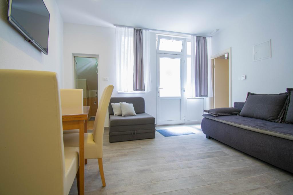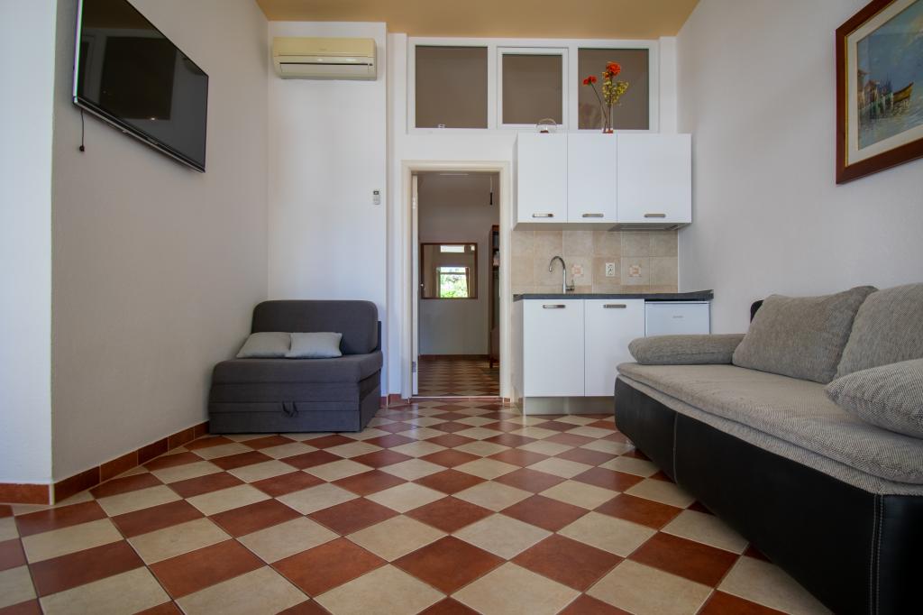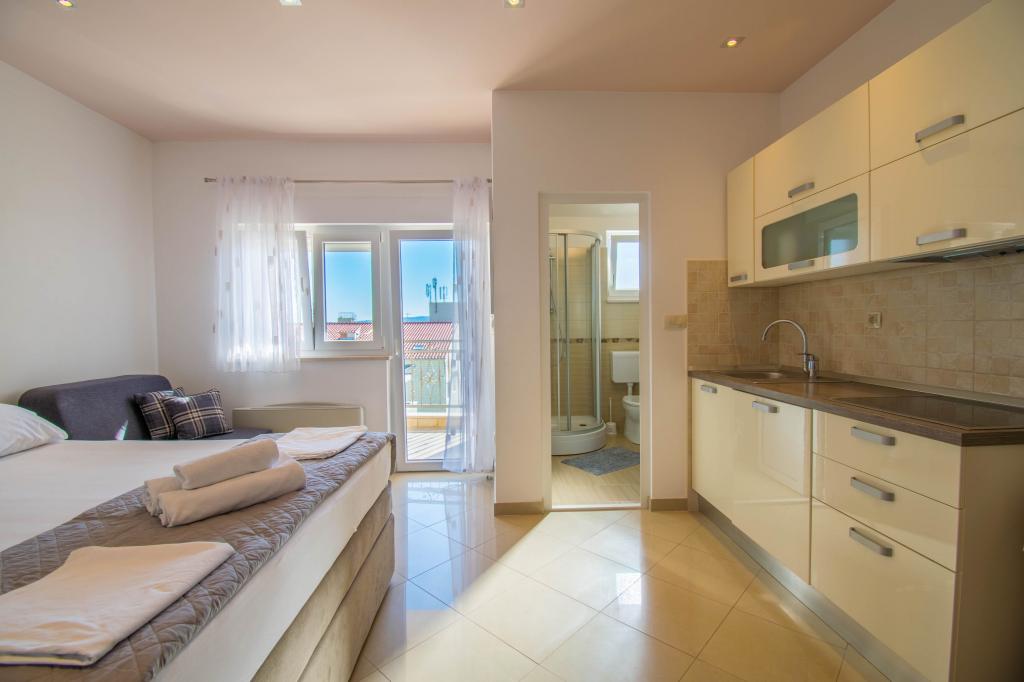 Bivali smo v studio apartmaju 2+2. Stanovanje je enako kot na slikah, zelo čisto in urejeno, vse pohvale za stanovanje in njegovo vzdrževanje. Lastnica je zelo prijetna, ni vsiljiva in vam bo vedno pomagala, če boste potrebovali ... balkon v apartmaju ima čudovit razgled, razgled je očarljiv. Navdušeni smo, otroci pa so zelo uživali. Priporočam vsem iz srca, ne bo vam žal!