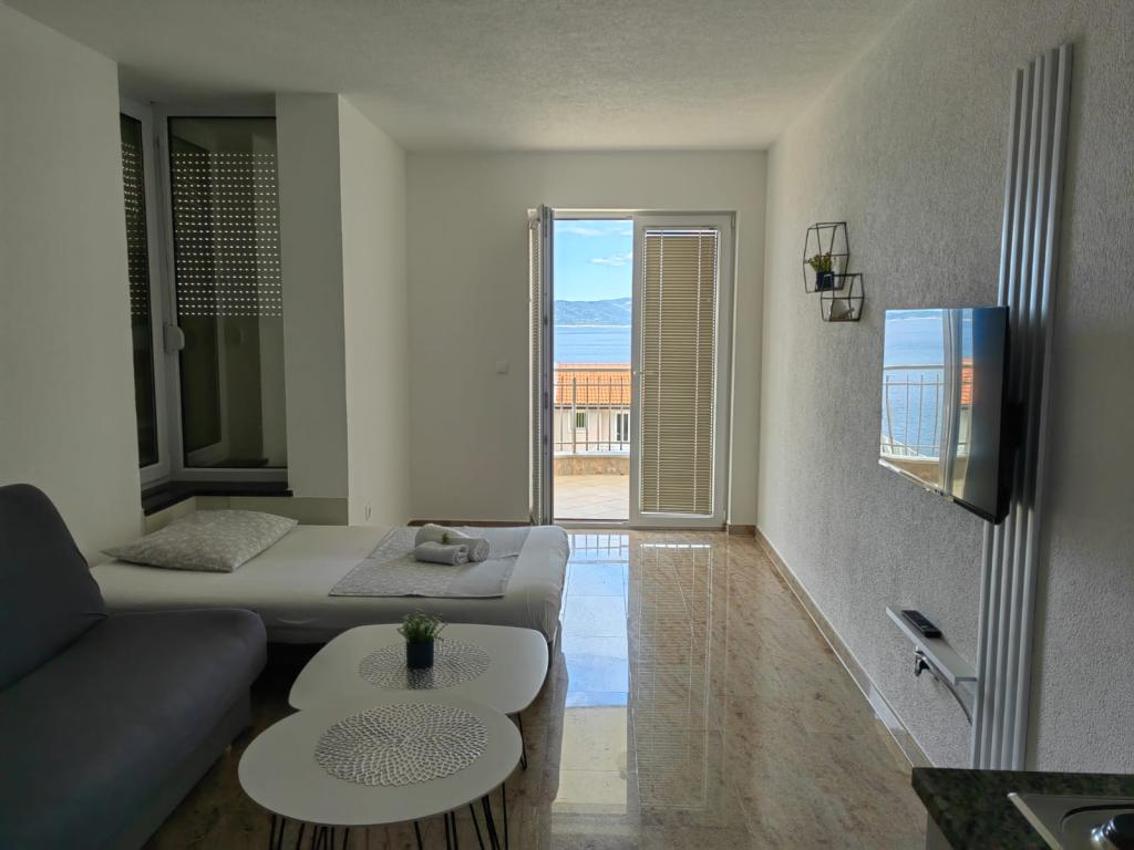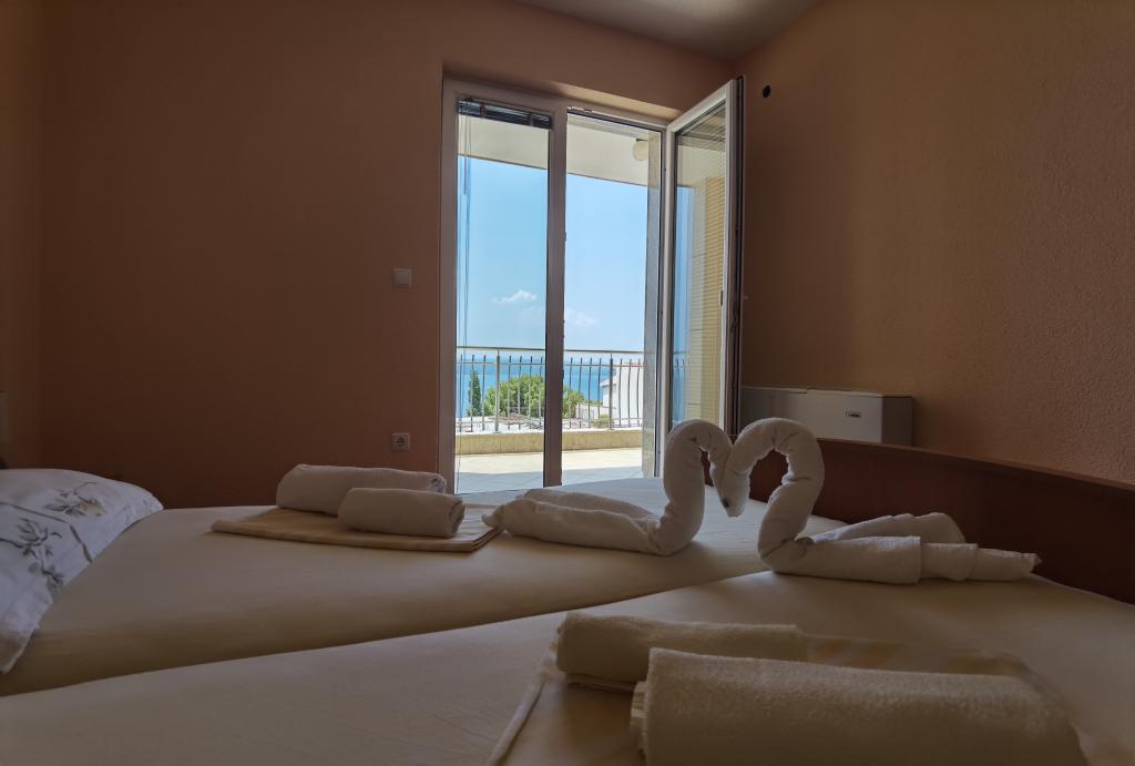Villa Marić se nahaja v mirnem delu Baške Vode, 200 metrov od morja. Vila ponuja čudovit pogled na morje, otoke in okoliške gore. V bližini so tržnice, restavracije in kavarne. Prostorni apartmaji so sestavljeni iz dvoposteljne sobe, kopalnice, kuhinje, jedilnice in dnevne sobe. V dnevni sobi je raztegljiv kavč. Sodobno opremljeni apartmaji poskrbijo za bolj udobno bivanje: SAT TV, WiFi, klima in potrebna kuhinjska posoda ter terasa s čudovitim pogledom na morje. Pred vilo je prostorno parkirišče. Parkiranje v garaži je možno na zahtevo in z doplačilom. Mirno okolje okoli hiše zagotavlja mir pred uličnim hrupom in varnost otrok. Prijazno osebje vam je vedno na voljo. Želimo vam toplo dobrodošlico in željo, da bi se počutili kot doma. Upamo, da boste uživali v naših apartmajih in da boste v Baški Vodi uživali nepozabno! Veselimo se vašega prihoda!