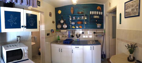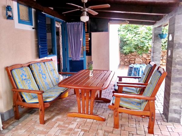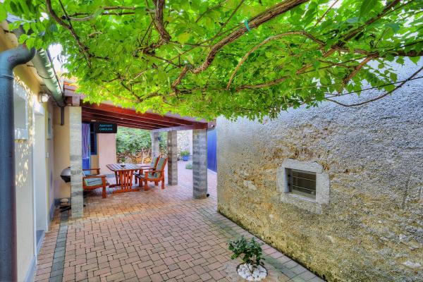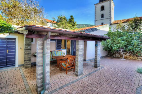 Apartman se nalazi u mirnom dijelu samog centra stare jezgre Baške u kući prizemnici sa prostorijama u nizu, rustikalnog izgleda i sastoji se od jedne sobe sa bračnim krevetom i kaučem na razvlačenje, kuhinje i kupatila. Renoviran je, te opremljen hladnjakom, mikrovalnom pećnicom, kuhalom i kuhinjskim posuđem. Ima ograđeno dvorište 70m2 sa nadstrešnicom koja štiti od sunca i velikim vrtnim stolom. U dvorištu su zasađene autohtone vrste biljaka kao što su maslina, ružmarin, palma i tekoma. Apartman osigurava privatnost, sa svih strana je zaklonjen od pogleda. Uz nadstrešnicu hlad daje i gusta zelena tekoma, koja se proteže uz kuću. Udaljen je samo 50 metara od prve plaže, 30 m od restorana i prvog kafića gdje se može popiti prva jutarnja kava. Poznata velika plaža je udaljena svega 200m. Gostima je na raspolaganju besplatan bežični pristup internetu. Parking je osiguran 300m od objekta.