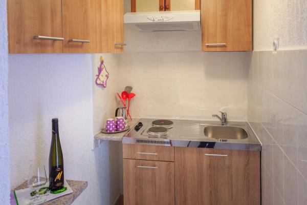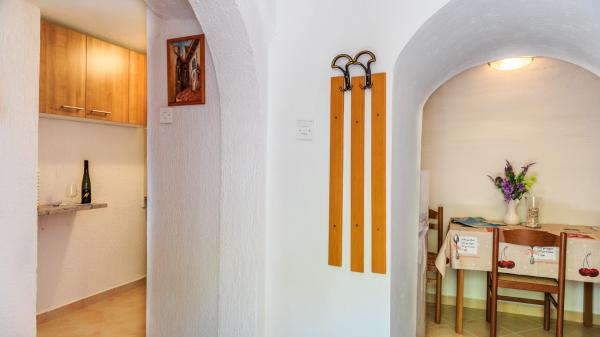 Lepo obnovljen, debele stene ohranjajo hladno klimo za prijetno bivanje in spanje. V mirnem domačem okolju starega dela mesta z le nekaj metri oddaljeno glavno promenadno ulico s konobami in lokali. Kuhinja majhna, a več kot priročna za dva s štedilnikom na dve grelni plošči. Morda manjka le kak oster nož za kruh in meso. V mirnem okolju apartmaja je prijetna tudi terasa s trto, ki daje prijetno senco v najbolj vročih dneh. Midva sva bila za to ceno več kot zadovoljna, pa tudi prijaznost lastnice je omembe vredna, :)