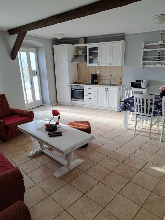 Stanovanje se nahaja v starem centru. Apartma ima dve spalnici z zakonsko posteljo in pomožnim ležiščem za 1 osebo (raztegljiv kavč. V pritličju je dnevna soba, jedilnica, kuhinja in kopalnica z ločenim WC-jem. V nadstropju je Apartma ima dve spalnici, WC in tuš kabino. Apartma ima 70 m od plaže z avtom 300m od stanovanja Promet je v tem delu mesta prepovedan.