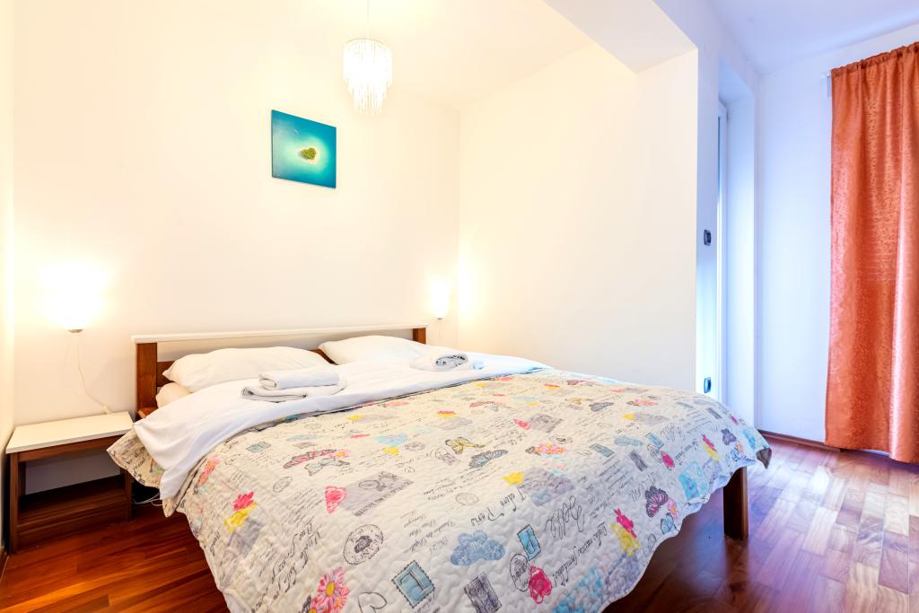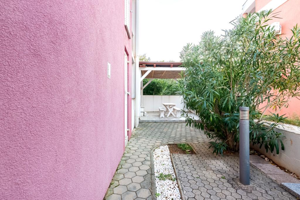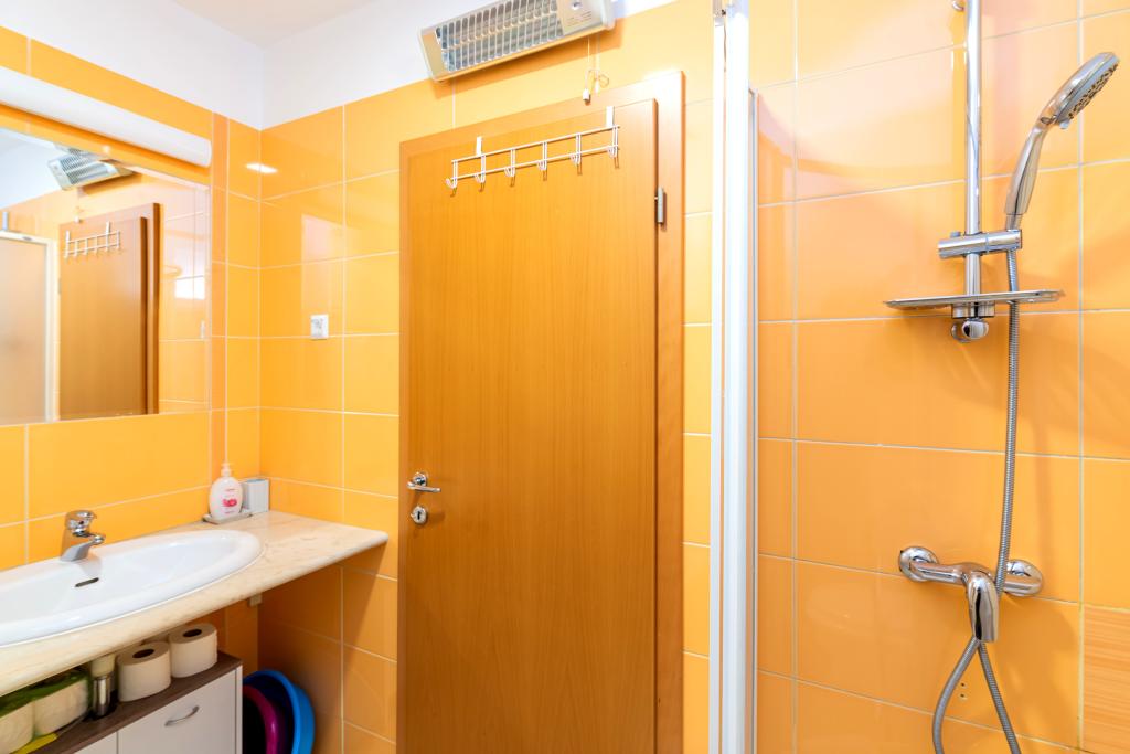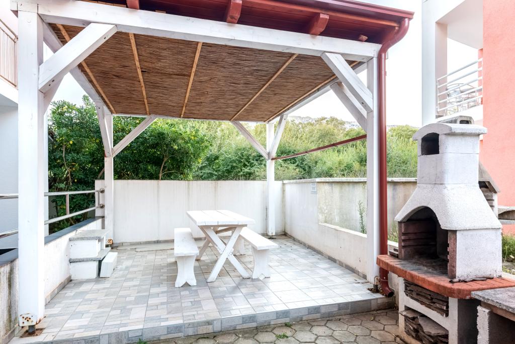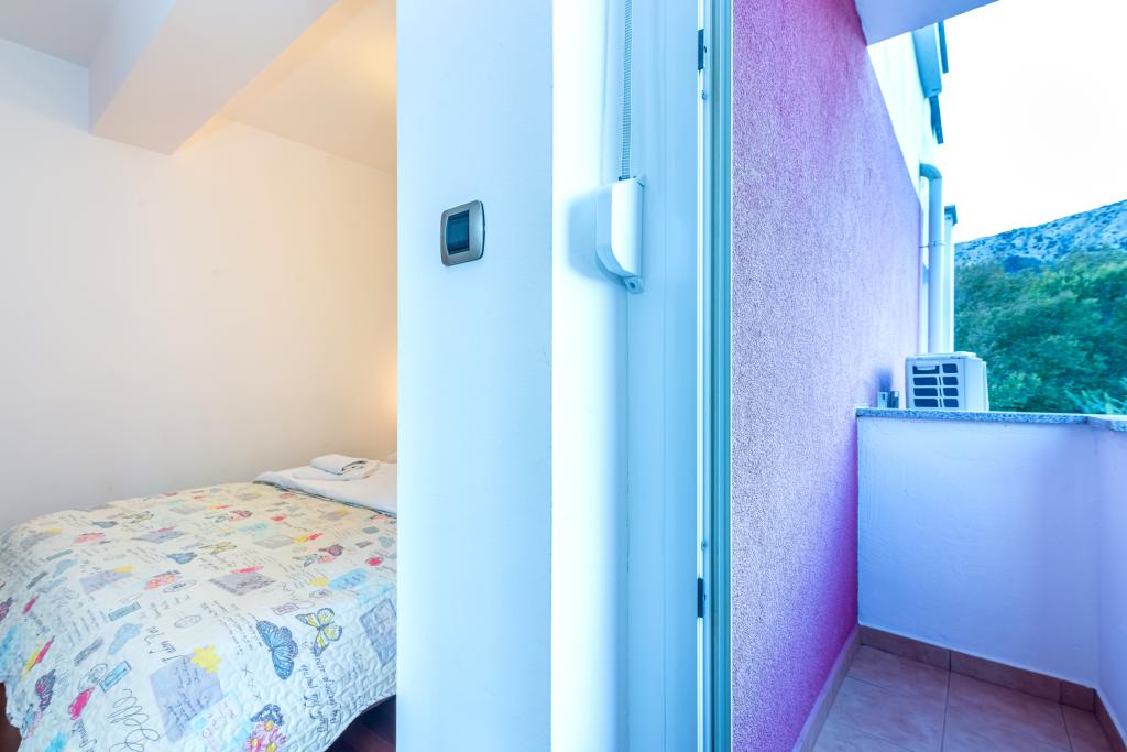 Stanovanje se nahaja v 2. in 3. nadstropju. Ima 2 dvoposteljni sobi z zakonskimi posteljami, 1 dvoposteljno sobo z enojnima posteljama, dnevno sobo s kavčem za 2 osebi, 2 kopalnici, popolnoma opremljeno kuhinjo in jedilnico. Apartma se nahaja približno 3 minute hoje od osrednje plaže. Ta sodoben apartma se nahaja v mirnem predelu in je opremljen s 3 klimatskimi napravami, brezplačnim brezžičnim internetom, SAT-TV, prostorno teraso in brezplačnim zasebnim parkiriščem pred hišo. V bližini objekta je tudi manjša trgovina in restavracija.