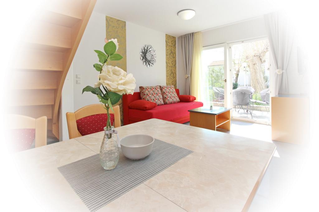 Prosimo, upoštevajte, da je rezervacija možna za minimalno 4 nočitve od 01.04.-19.06., za minimalno 7 nočitev od 20.06.-04.09., s prihodom/odhodom v SOBOTO ali NEDELJO, in za minimalno 4 nočitve od 05.09.-06.10.. Cene se bodo prikazale, ko vnesete želeni datum bivanja in število oseb. Cene po sezonah si lahko ogledate pod cenikom € (na desni, pod slikami želene namestitvene enote). Dodatni stroški: turistična taksa (odrasli 2,20 EUR/oseba/noč; otroci 12-18 let 1,10 EUR/oseba/noč), prijava (5 EUR/oseba/enkratno) in (parkiranje 3 EUR/avto/dan) Hišni ljubljenčki - dovoljeni - na zahtevo - (15 EUR/hišnik/noč) Za fiksno rezervacijo je potrebno plačilo akontacije (prek bančnega nakazila) v višini 30% celotne cene apartmaja. Preostanek nastanitvene takse, davek, registracija in parkiranje se plačajo ob prihodu. Prijava je po 14. uri, odjava pa do 10. ure.