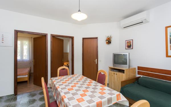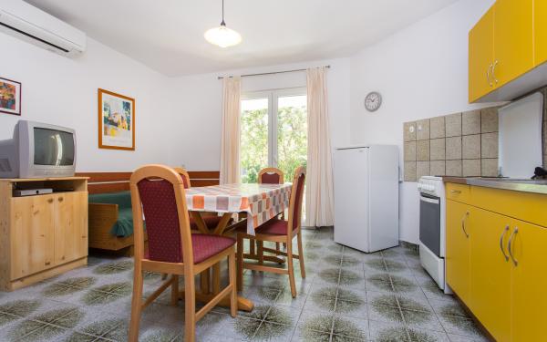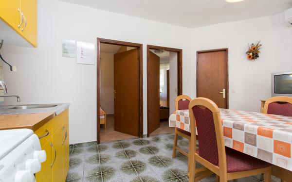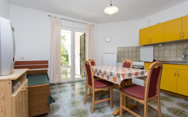 Marietta Apartmaji se nahajajo v Baški na otoku. Hiša se nahaja v ulici Stjepan Radić, med zelenjem, ki je ostal pri nas veliko bolj udobno v poletni vročini! Bolj znana Vela plaža, restavracije in trgovine so v 300 metrov, tako za vaše potovanje na plažo ali večerjo ni treba uporabljati avto, kot v poletnih mesecih veliko pomeni! Dom je šest (6) apartmaji, od katerih so trije apartmaji za dve osebi in trije apartmaji za tri osebe. Vsi naši gostje na vrtu je na voljo z veliko mizo in klopi. Parkirišče je prav tako na voljo in je ob hiši. Upamo, da smo sprožila svoj interes z našo ponudbo in da se boste odločili preživeti počitnice prav v našem stanovanju!