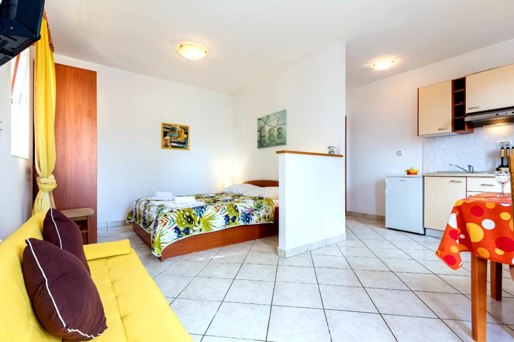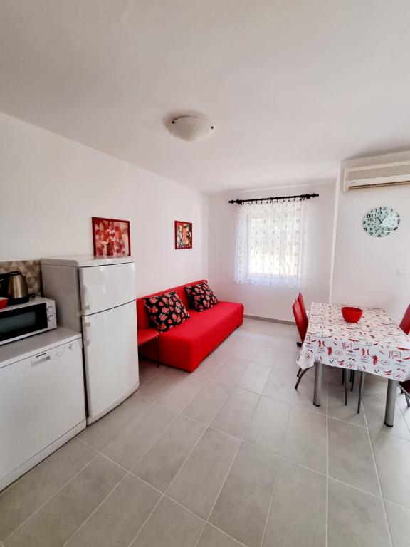 Preberite več Namestitvene enoteEkološka taksa znaša 0, 30 € / osebo / dan. Prijava gostov znaša 2,50 € na osebo / enkrat. Bivanje do 3 noči se zaračuna 30% več. Prijava je od 14. ure, odjava do 10. ure. Za potrditev rezervacije je treba plačati akontacijo v višini 20% celotne cene, preostali znesek se plača ob prihodu. Dodatno ležišče se zaračuna za 1 noč, od 10 evrov v predsezoni in po sezoni do 12 evrov v sezoni. Dodatno ležišče (kavč) se zaračuna od 6 evrov za 1 noč v predsezoni in po sezoni, do 8 evrov v sezoni. Hišni ljubljenčki se zaračunajo od 4 do 8 evrov, odvisno od velikosti. Lastnik se z vsakim gostom dogovori o vseh podrobnostih in se vedno trudi gosta osrečiti.