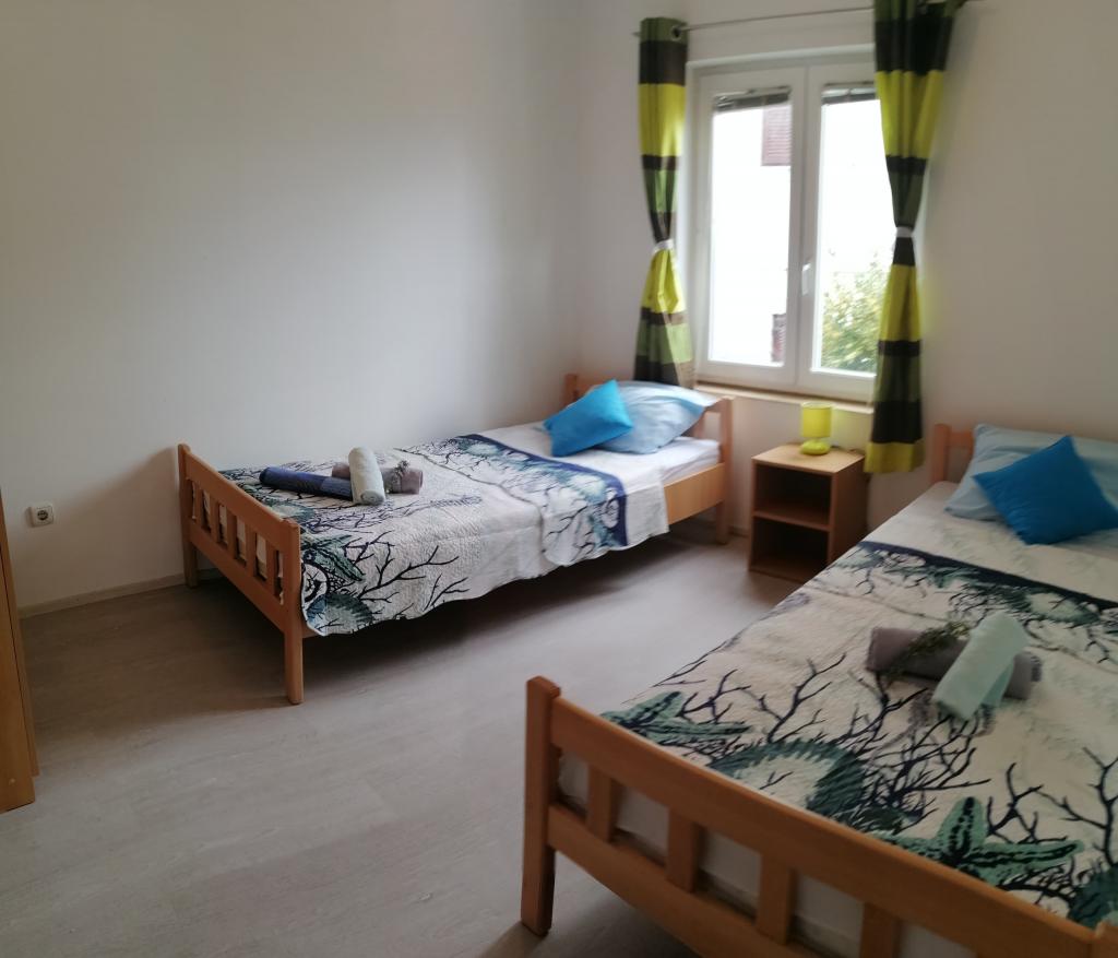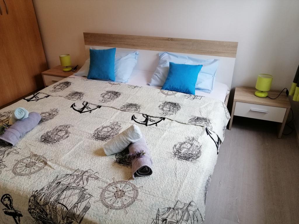 Odlična lokacija. Zelo prostorno stanovanje. Zelo dobro razmerje med ceno in kakovostjo. 70 eur / dan za 4 osebe med 5. 11. 11. 2021. Opremljena kuhinja. Čiste in dovolj brisač. Stanovanje je v 1. nadstropju z ločenim vhodom, prostorno teraso. Oddaljenost od morja je približno 5-7 minut peš. Parkirišče je vključeno v ceno (to je velika prednost, saj je cena na tem območju nekje med 5-10 evri na dan)