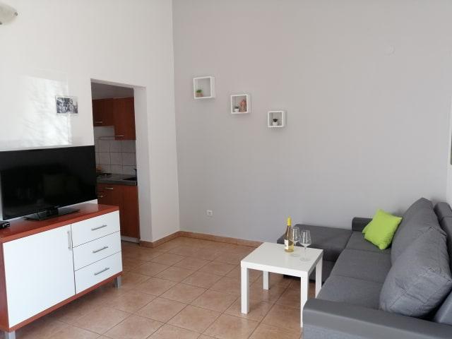 Dobra lokacija, na izhodu iz Baške, tišina , mirno. Idealen kraj za družine z otroki. Nedaleč od plaže. Vse ostale plaže so cenovno ugodne z vodnim taksijem. Lepi in zelo koristni lastniki, vedno na mestu. Avtobusno postajališče čez cesto, lahko greste do KRK. Dobro vzdrževan apartma, vse na svojem mestu, lepa velika terasa. Parkirna mesta v senci in na posestvu, dober wifi in pripomočki. 4 zvezdice zaradi pomanjkanja pomivalnega in pralnega stroja sicer je vse ok. Lep pozdrav lastnikom in hvala za lepo bivanje.