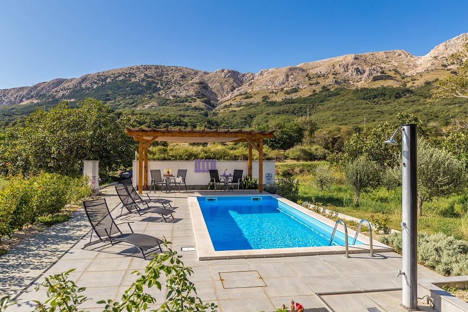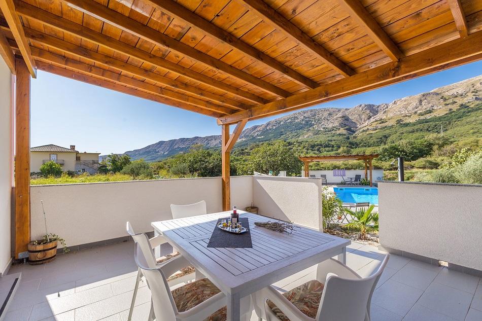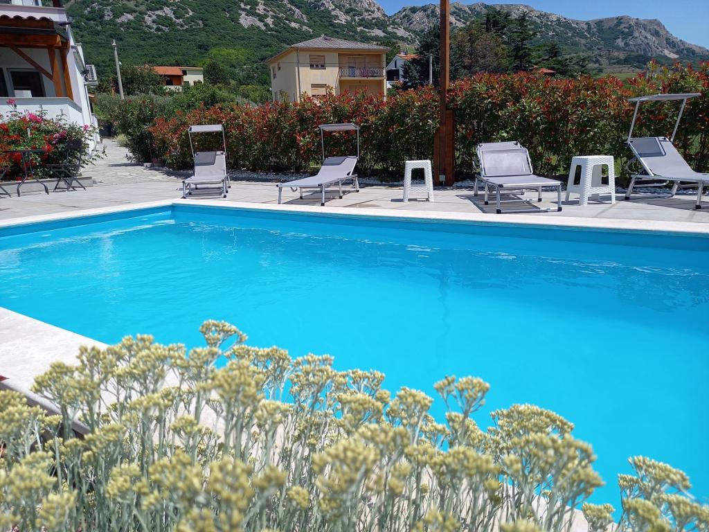 Lepo umeščen kraj, stran od gneče na mirnem območju s pogledom na čudovite gore. Apartma za 5 oseb lep, čist, prostoren, dobro opremljen z veliko teraso. Bazen je čist in precej velik, raj za otroke. Ob bazenu lahko plavate in se sprostite ob kavi ali kozarcu vina. Lahko se odpravite na kolesarske izlete, na primer na Baško ali na gorske izlete - če se radi sprehajate po vročini :) Odprti in prijazni lastniki.