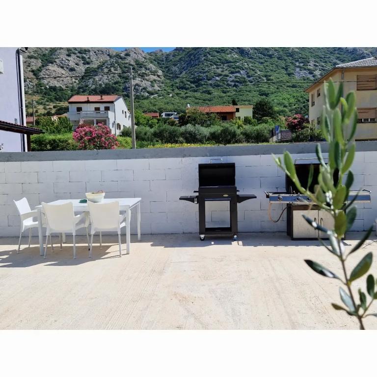 Zelo lep in moderen apartma prave velikosti za 2 osebi največ 3. Opremljen je z vsem potrebnim za kuhinjo in tudi z raznimi rjuhami, odejami in raznimi brisačami. Do tja je enostavno priti in 5 minut vožnje z avtom od centra Baške, vendar priporočam, da prinesete kolesa, če jih imate, ker so vsa parkirišča plačana. Bazen je prav prijetna zabava, še posebej ob koncu dneva po celem dnevu na soncu/morju, da se sprostite v miru, ne da bi vas motili. Gospa je bila zelo ustrežljiva in je hitro odgovorila na vsa moja vprašanja pred in med bivanjem. Res velika terasa opremljena, tudi z stojalo za sušenje in še en hladilnik (vsaj v tistem, v katerem sem bival), kar je bilo zelo koristno! Odličen BBQ! Edino na kar morate paziti je, da dobro očistite, če kaj polijete po tleh, saj je polno mravelj (tudi v brošuri piše), vendar to ne spremeni moje ocene 5 zvezdic! Priporočam plažo Vela Luka, eno najlepših!