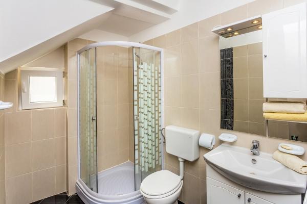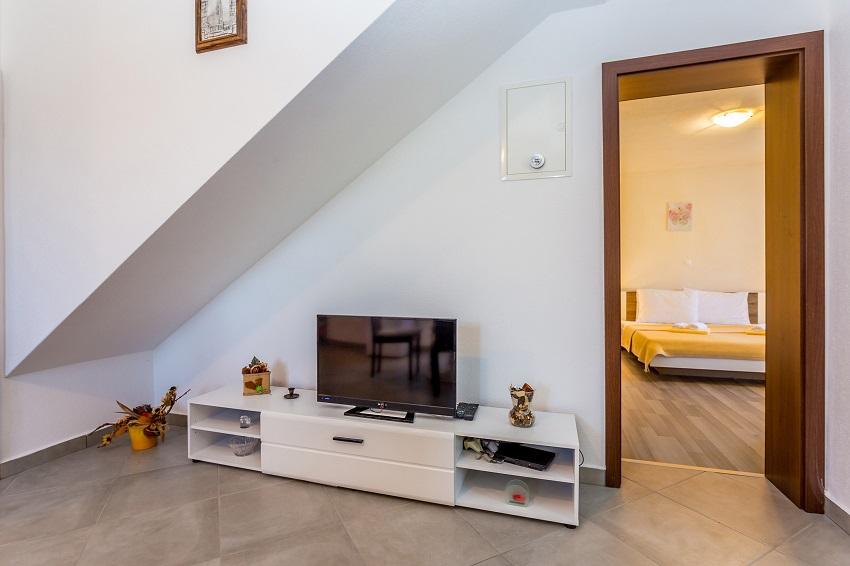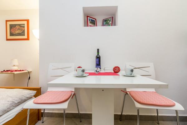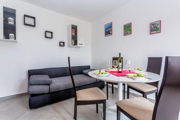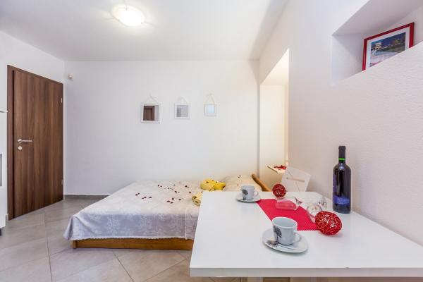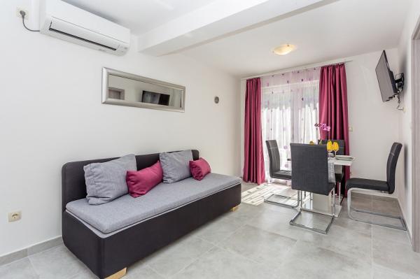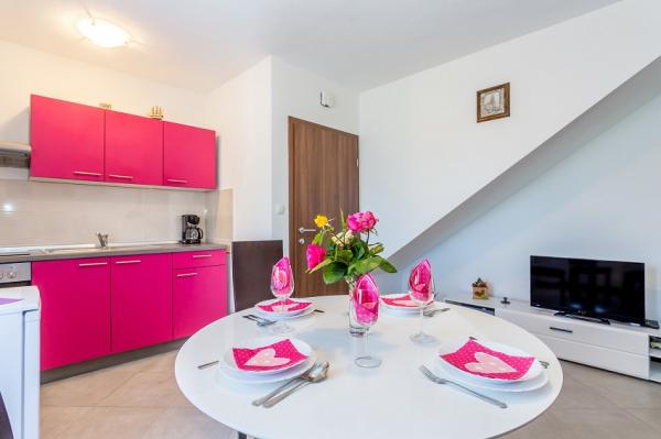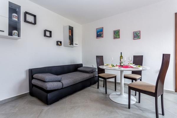 Preberite več Namestitvene enoteModel plačila: predplačilo v višini 30% ob rezervaciji, na bančni račun, preostanek denarja pa se plača na dan prihoda v apartma z gotovino ali nekaj dni pred prihodom v apartma na bančni račun. Turistična taksa ni vključena v ceno. Dovoljen je 1 hišni ljubljenček, potrebno je doplačilo v višini 10 evrov na noč in predhodna najava za prihod hišnega ljubljenčka. Ura prihoda: 14.00 - 17.00 Ura odhoda: do 10.00