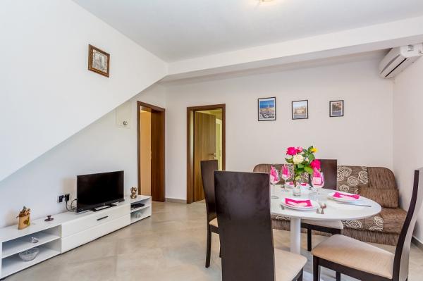 Stanovanje je na vrhunski lokaciji za nas s psom. Zunaj centra in hkrati lahko dostopen s plažo s kolesom ali avtom. Zelo prijazni in topli gostitelji. Velikost apartmaja je bila tudi za nas povsem v redu in vedno se radi vračamo. Stanovanje je bilo zelo čisto. Majhna dobro opremljena kuhinja. Imeli smo tudi klimatsko napravo. Bazen čistijo vsak dan. Z družino Bešić je bilo čudovito in veseli se ponovnega srečanja.