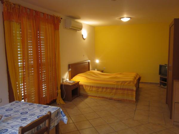 V stanovanjski hiši so 4 apartmaji. Od teh, dva velika apartmaja za skupno po 4 osebe, z 42 m2. V zadnjem delu hiše sta 2 studio apartmaja za 2 osebi. V stavbi je parkirišče s parkiriščem za vsako stanovanje. Vsi apartmaji so klimatizirani in imajo satelitsko televizijo. Stanovanjska stavba se nahaja 10 minut hoje do znane plaže (1800 m dolga, ki je še posebej primerna za otroke), in 10 minut hoje do centra mesta. Blizu obstajata dve trgovinah na razdalji 100 metrov, in zelo dobro restavracijo. Soba čiščenje je vključeno v ceno, posteljnino zamenjano vsakih 7 dni.