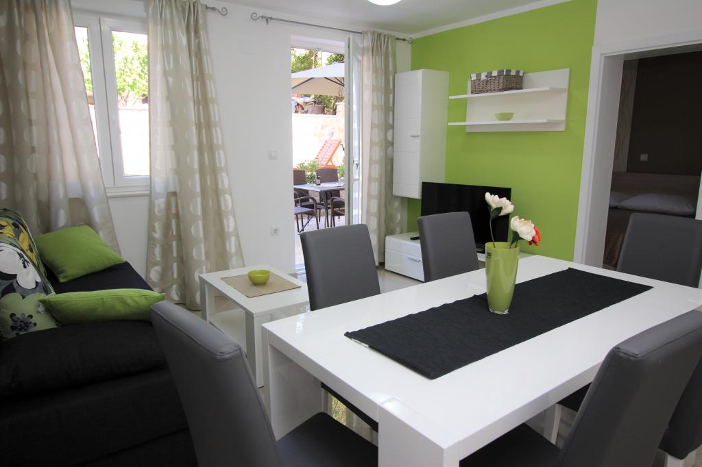Preberite več Namestitvene enoteProsimo, upoštevajte, da je rezervacija možna za minimalno 4 nočitve od 01.04.-20.06., za minimalno 7 nočitev od 21.06.-05.09. in za minimalno 4 nočitve od 06.09.-06.10. Cene se bodo prikazale, ko vnesete želeno obdobje bivanja in število oseb. Cene po sezonah si lahko ogledate pod cenikom v € (na desni, pod slikami želene namestitvene enote). Dodatni stroški: turistična taksa (odrasli 2,20 EUR/oseba/noč; otroci 12-18 let 1,10 EUR/oseba/noč) in prijavnina (5 EUR/oseba/enkratno). Za fiksno rezervacijo je treba plačati akontacijo v višini 30 % celotne cene apartmaja (prek bančnega nakazila). Preostali znesek namestitve, davka in prijavnine se plača ob prihodu. Prijava v apartma je možna po 14. uri, odhod je do 10. ure.