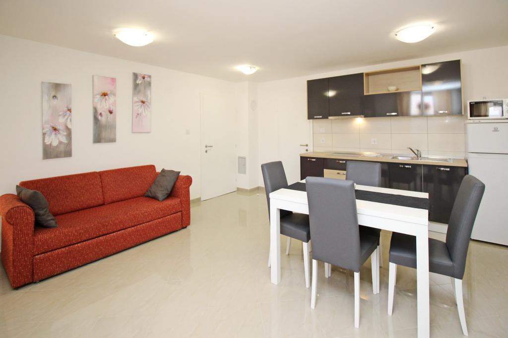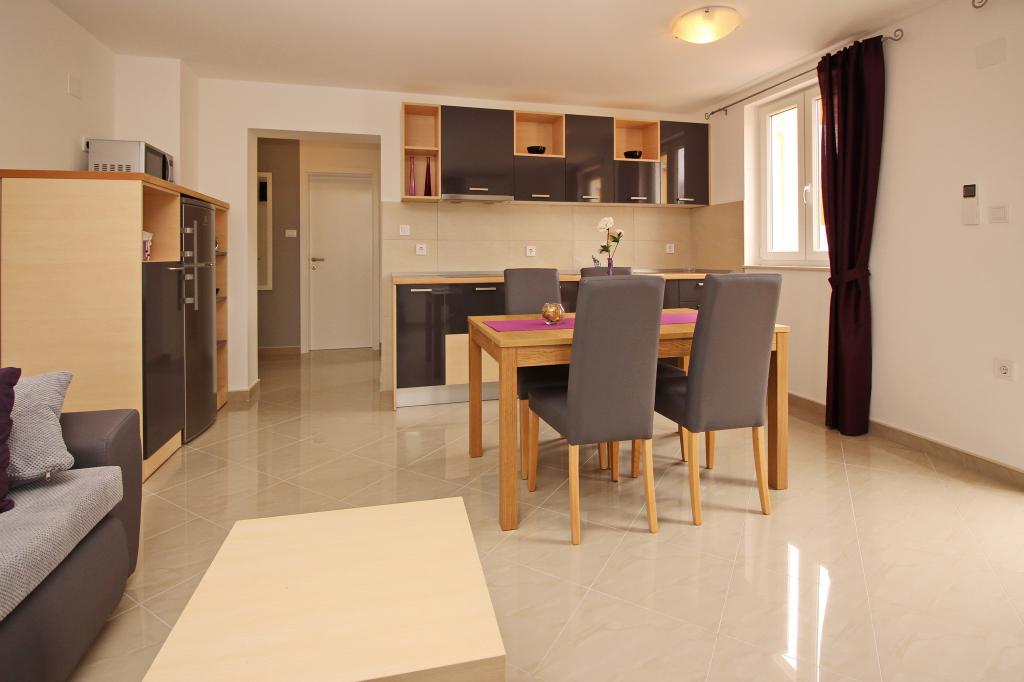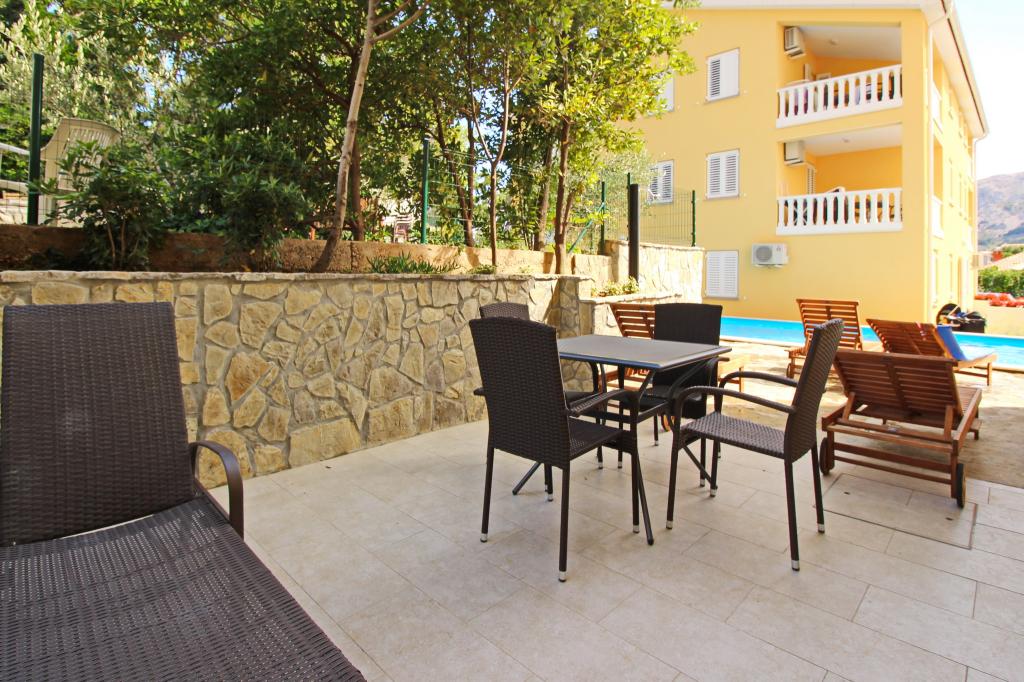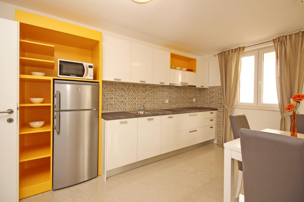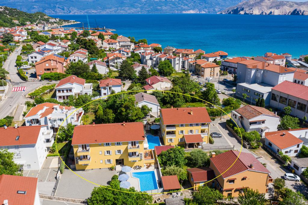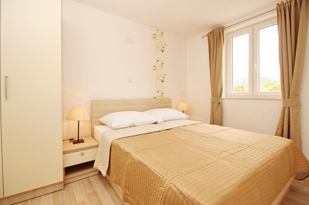 Moderno opremljeni apartmaji, le 300 m od čudovite plaže Vela Plaža, s skupnim zunanjim bazenom in žarom. Hiša ima 13 apartmajev, od katerih se 4 nahajajo v kleti. Apartmaji v kleti uporabljajo skupno teraso (20 m2), ki se nahaja v zgornjem nadstropju. Vsaka namestitvena enota je opremljena s pomivalnim strojem, pralnim strojem, klimatsko napravo, internetom in SAT-TV. Gostom je na voljo eno parkirno mesto. Hišni ljubljenčki niso dobrodošli.