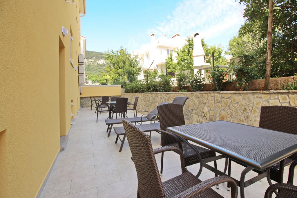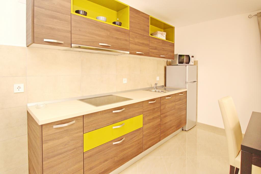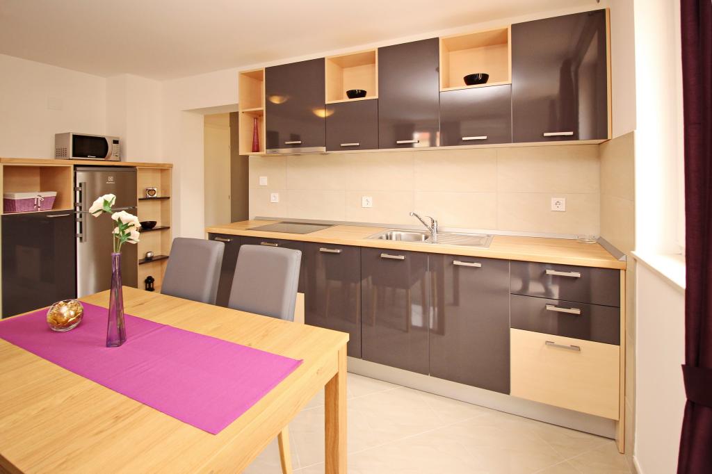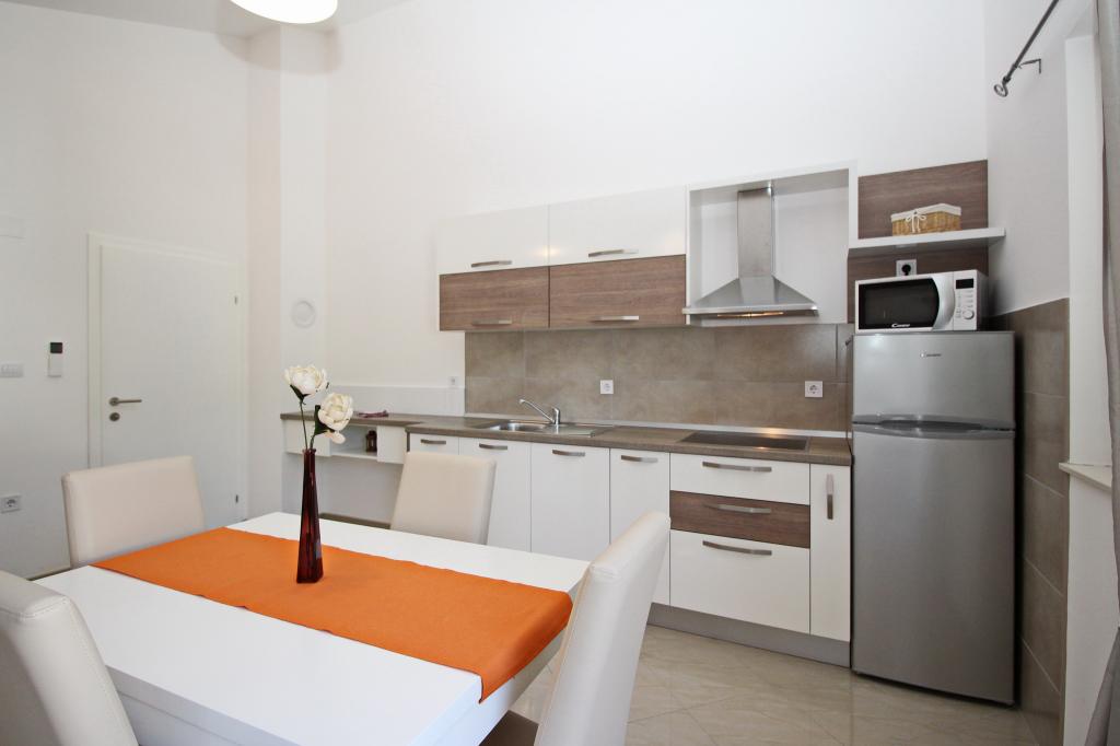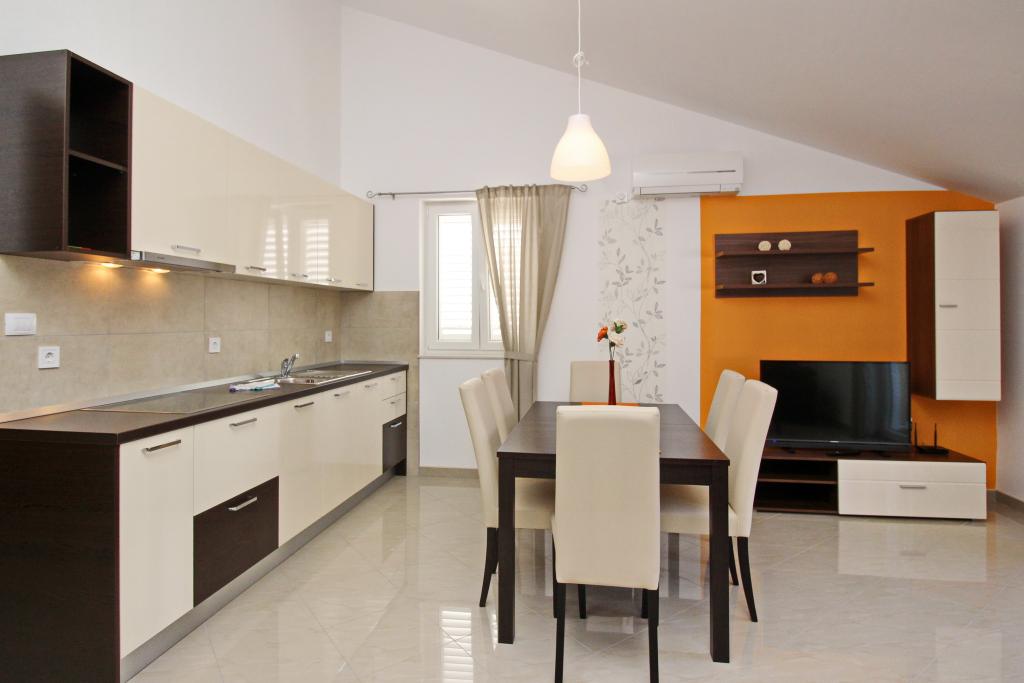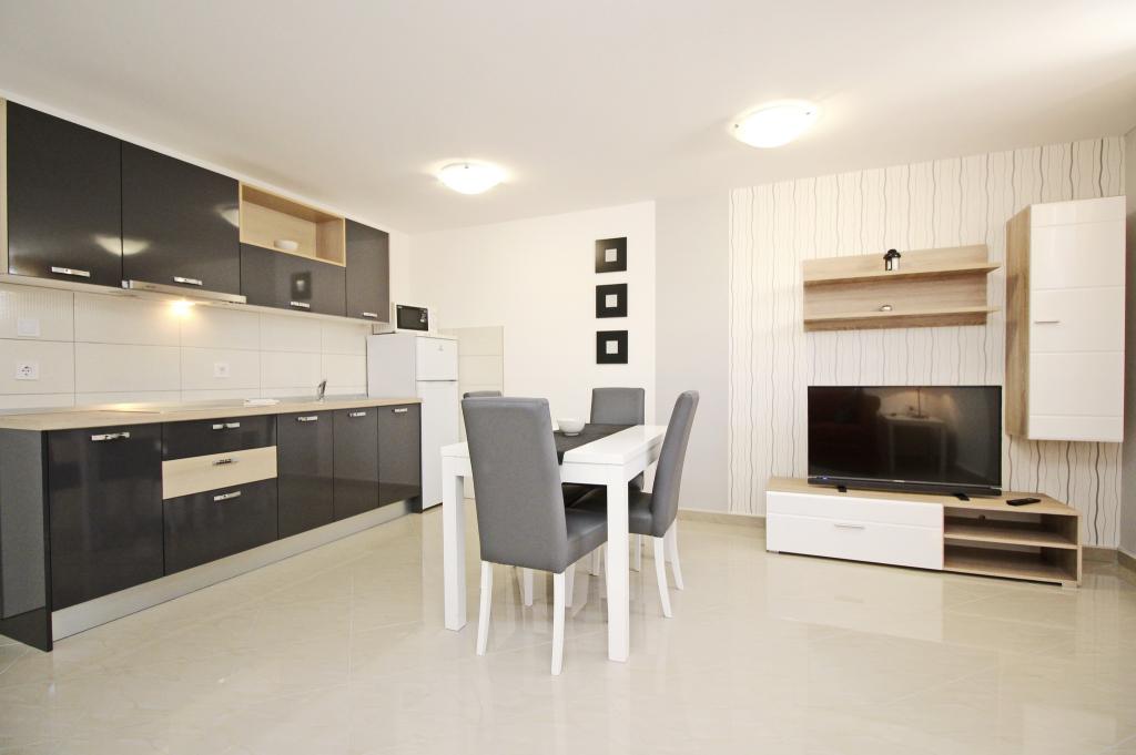 Moderno opremljeni apartmaji, le 300 m od čudovite plaže Vela Plaža, s skupnim zunanjim bazenom in žarom. Hiša ima 13 apartmajev, od katerih se 4 nahajajo v kleti. Apartmaji v kleti uporabljajo skupno teraso (20 m2), ki se nahaja v zgornjem nadstropju. Vsaka namestitvena enota je opremljena s pomivalnim strojem, pralnim strojem, klimatsko napravo, internetom in SAT-TV. Gostom je na voljo eno parkirno mesto. Hišni ljubljenčki niso dobrodošli.