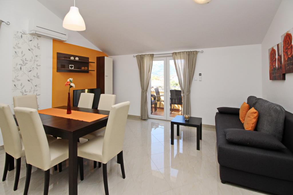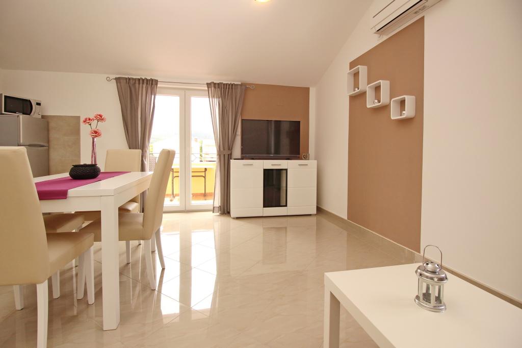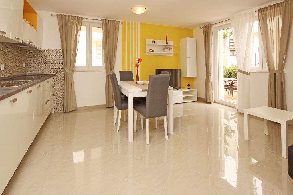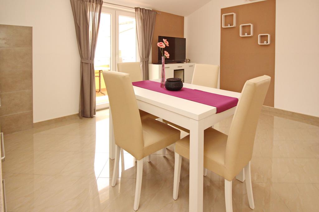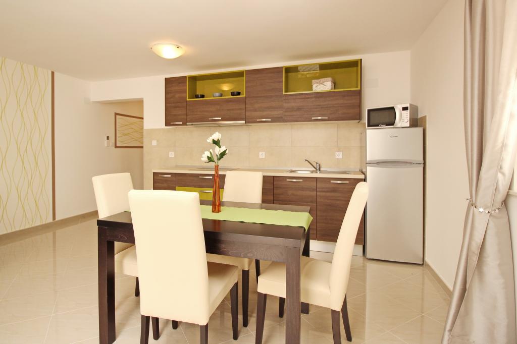 Preberite več Namestitvene enoteProsimo, upoštevajte, da je rezervacija možna za minimalno 4 nočitve od 01.04.-20.06., za minimalno 7 nočitev od 21.06.-05.09. in za minimalno 4 nočitve od 06.09.-06.10. Cene se bodo prikazale, ko vnesete želeno obdobje bivanja in število oseb. Cene po sezonah si lahko ogledate pod cenikom v € (na desni, pod slikami želene namestitvene enote). Dodatni stroški: turistična taksa (odrasli 2,20 EUR/oseba/noč; otroci 12-18 let 1,10 EUR/oseba/noč) in prijavnina (5 EUR/oseba/enkratno). Za fiksno rezervacijo je treba plačati akontacijo v višini 30 % celotne cene apartmaja (prek bančnega nakazila). Preostali znesek namestitve, davka in prijavnine se plača ob prihodu. Prijava v apartma je možna po 14. uri, odhod je do 10. ure.