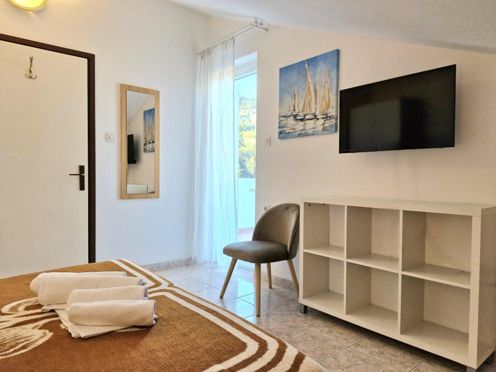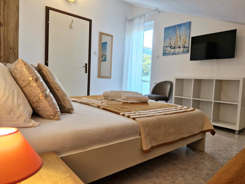 Apartmaji Mirjana Fičor se nahajajo v Baški, najbolj priljubljenem letovišču na otoku Krku, znanem po najlepši peščeni plaži. Apartmaji se nahajajo v družinski hiši, na mirni lokaciji, le 8 minut lahke hoje do čudovite plaže in prav toliko do centra mesta. Vsak apartma ima balkon s čudovitim pogledom na morje ali gore, ki obkrožajo Baško. Pred hišo imamo prostorno parkirišče. Imamo tudi veliko ograjeno dvorišče, z veliko oljkami, sadnim drevjem in sivko. Primerno tudi za družine z otroki. Skupaj imamo 6 apartmajev. Na voljo je tudi zunanji žar. Vsak apartma ima klimatsko napravo, SAT TV in brezplačen internet. Želimo vam prijetno bivanje pri nas. dobrodošli Družina Mirjana in Vlatko Fičor, Baška