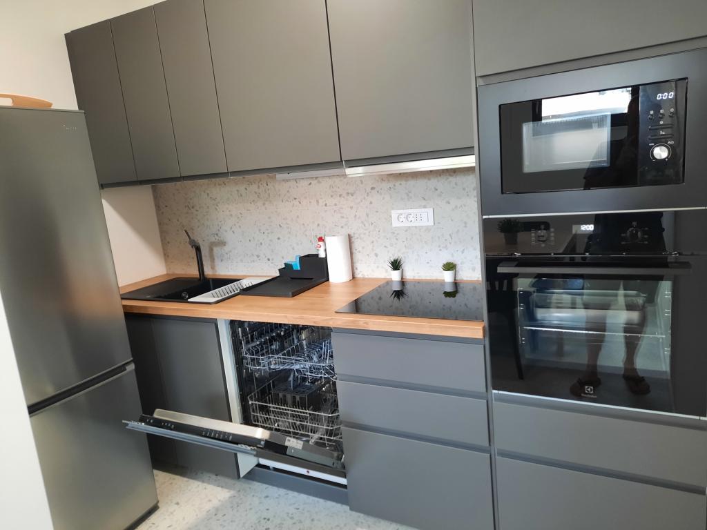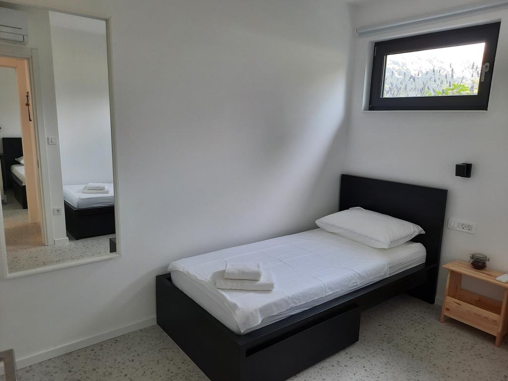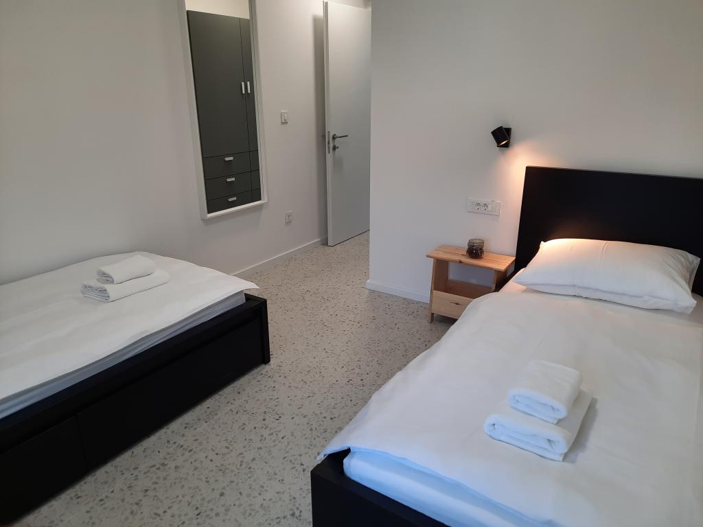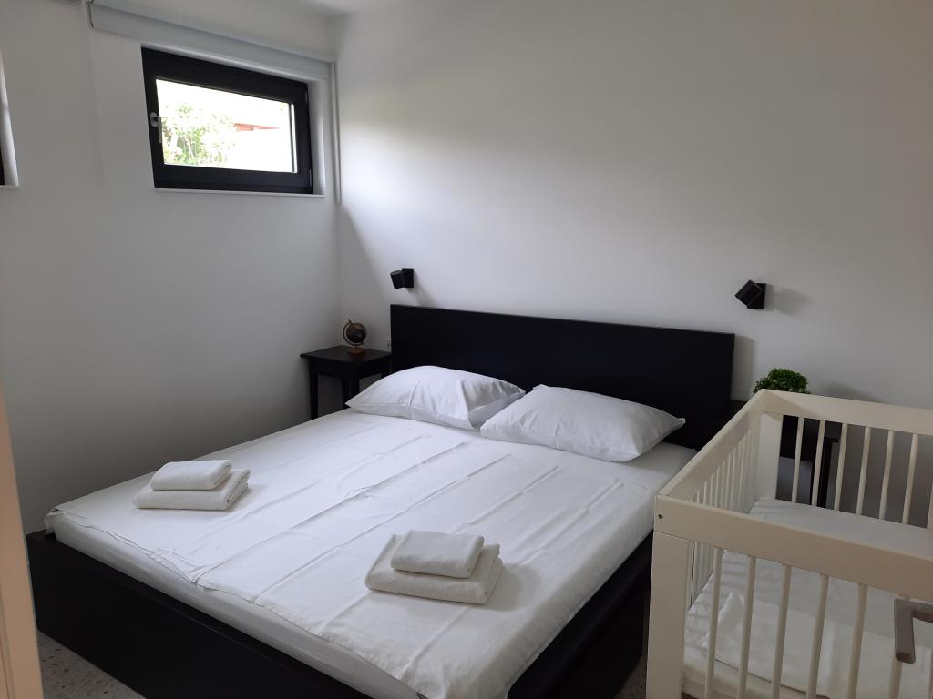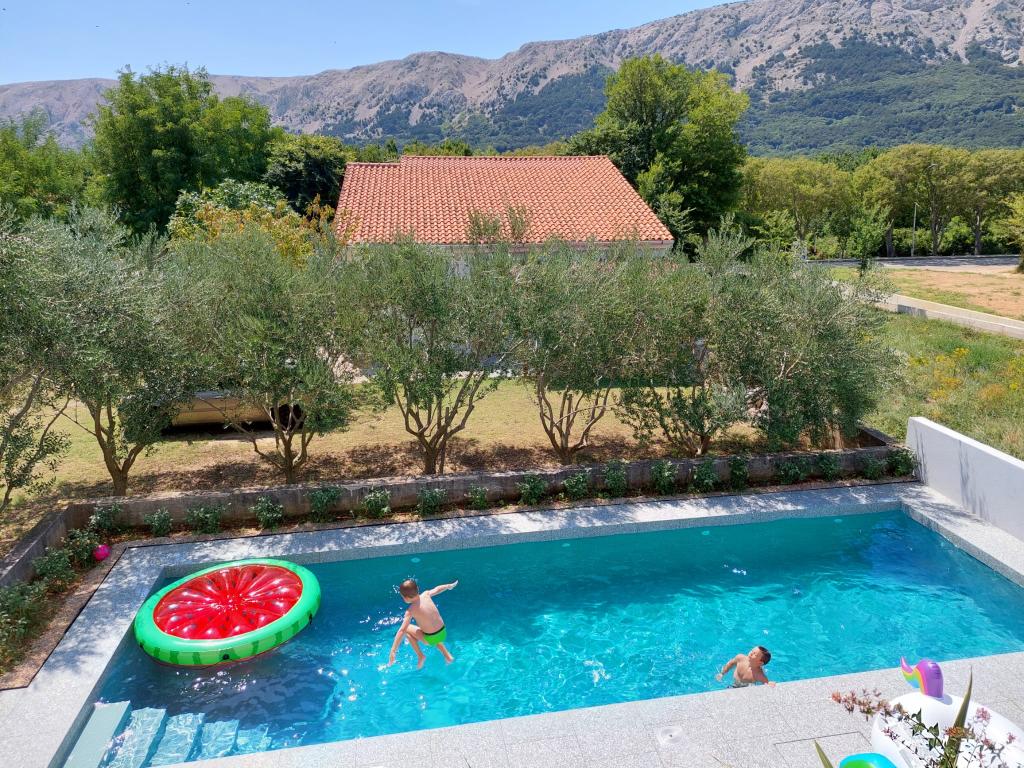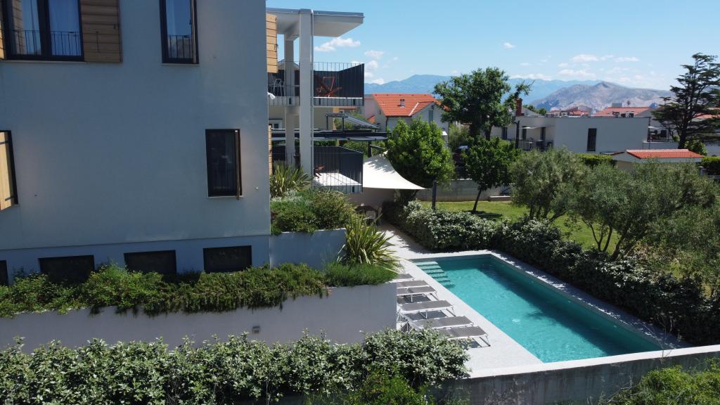 Moderno urejeni in popolnoma opremljeni apartmaji v novogradnji z bazenom. Prijeten prostor za sprostitev okoli bazena. Hiša se nahaja v Baški, na mirni lokaciji in 7 minut hoje od Vele plaže.