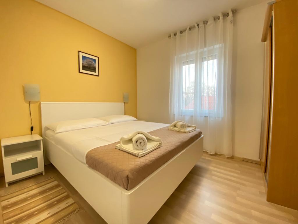 Naša hiša se nahaja v mirni ulici, le 350 metrov od morja in plaže. Apartmaji so popolnoma opremljeni, imajo satelitsko televizijo, brezžični internet, klimatsko napravo, varovano parkirišče na dvorišču, na vrtu v senci oljk pa imajo naši gostje na voljo žar.