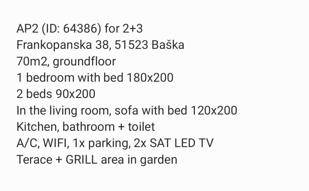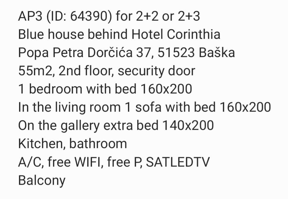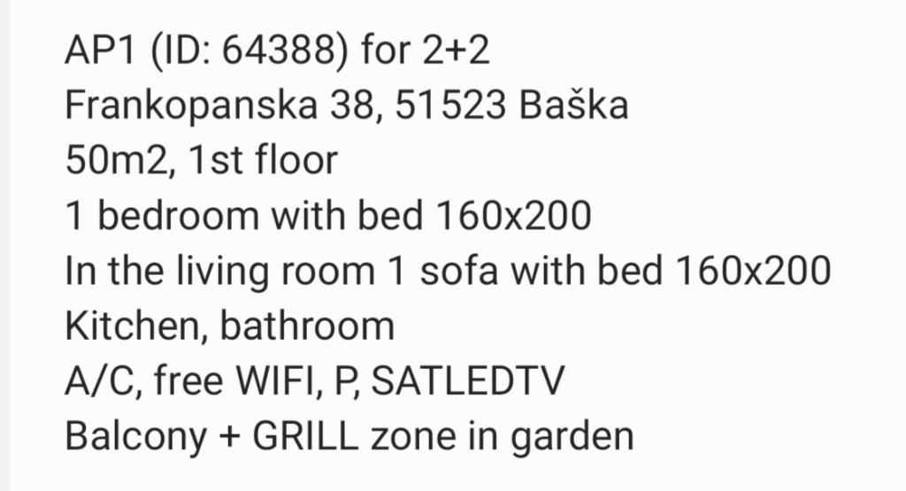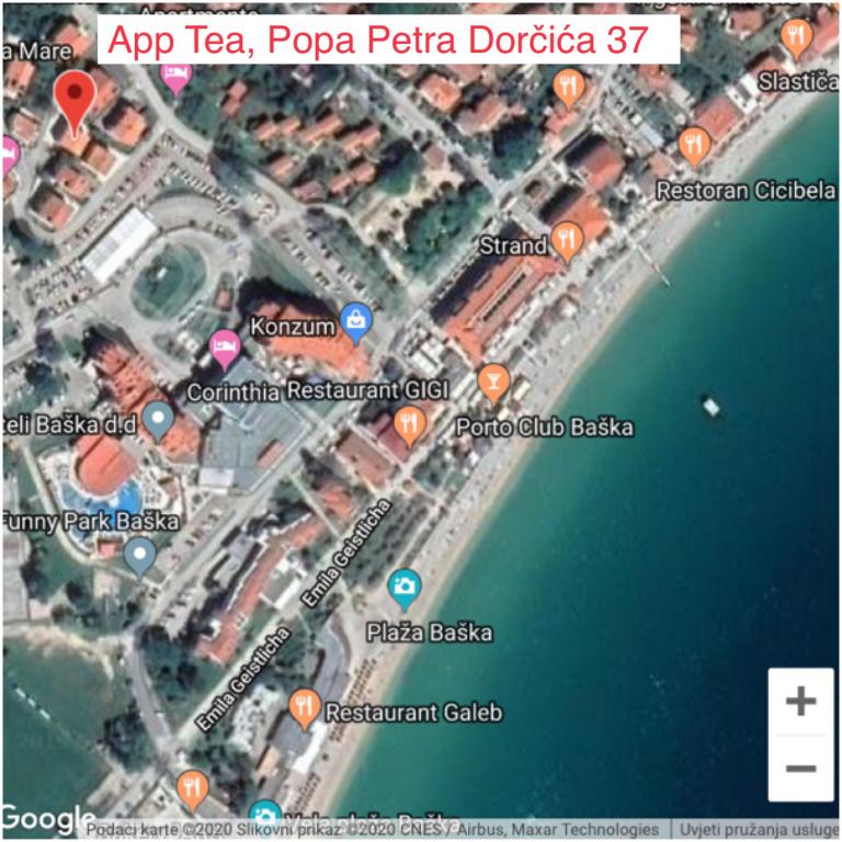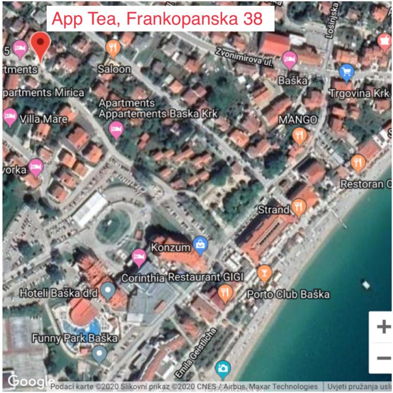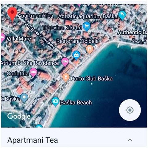 Apartmaji Tea so družinski apartmaji v Baški na otoku Krku. Nahajajo se na več lokacijah v Baški, v bližini hotela Sunny Corinthia in v Dragi Baška. Apartmaji so popolnoma opremljeni in se nahajajo v mirni ulici v bližini osrednje plaže Vela Plaža.