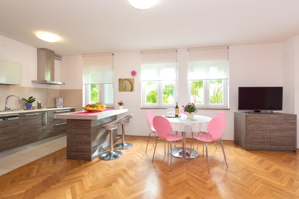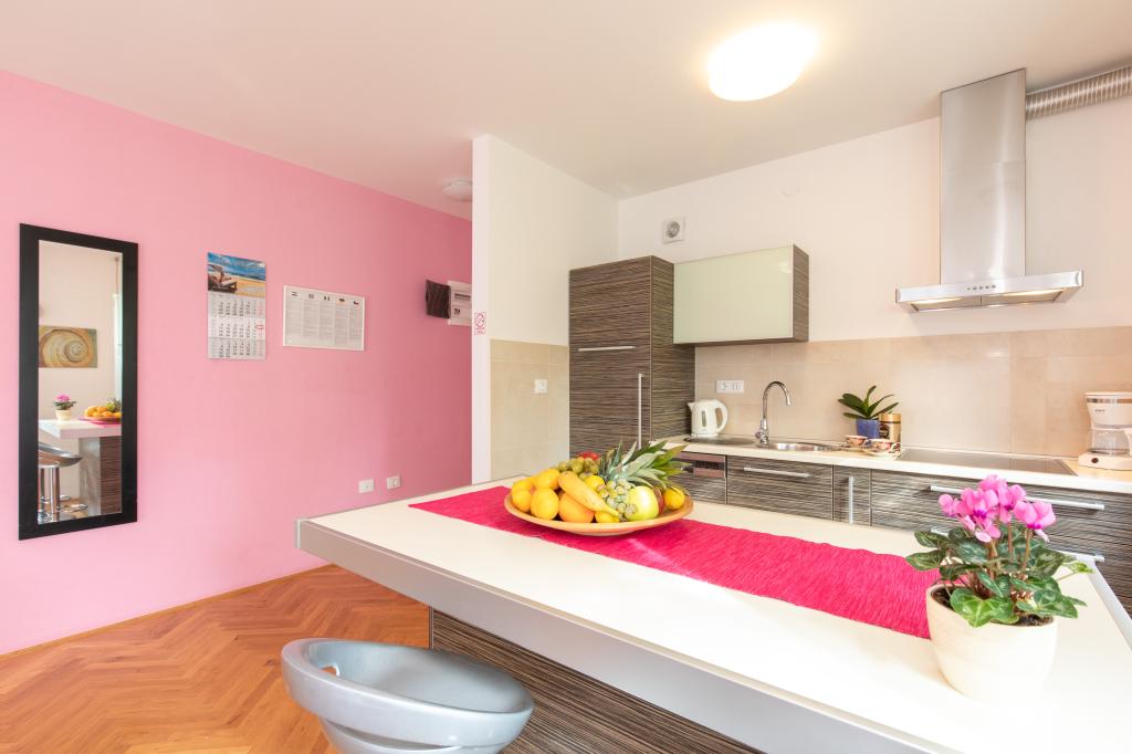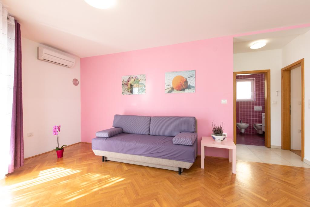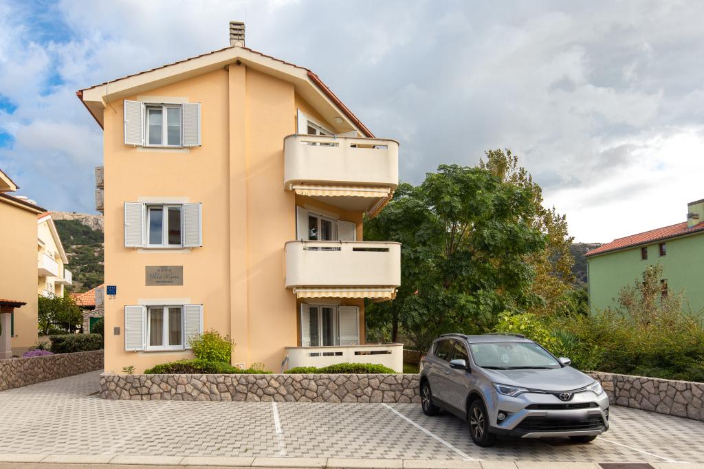 Apartmaji VillaMare se nahajajo v mirnem delu Baške, 5-7 minut lahkega sprehoda do čudovite peščene plaže in samega centra z vsemi ugodnostmi, ki jih ponuja turistično mesto. V kategoriji 4**** je 5 apartmajev: 4 x A/4+2 za max 4-6 oseb, 1 x A/2+2 za max 2-4 osebe in lep studio za max 1-2 osebi. . Vsi apartmaji so klimatizirani in sodobno opremljeni, brezplačen WiFi, SAT TV, 1 parkirno mesto na apartma; v dvoriščnem delu je vsem gostom na voljo vrt z žarom, leseno paviljonom in otroškim igriščem. Otroška posteljica, visok stol/mizica za hranjenje, pralni stroj so na voljo na zahtevo. Vsi apartmaji v prizidku imajo udobno teraso, kjer se lahko popolnoma sprostite in uživate v čudovitem razgledu na Baško in gore, ki jo obdajajo, medtem ko ima apartma v pritličju dodatno razširjeno teraso z ležalniki in neposrednim dostopom do čudovitega vrta ( ...in figovci :-)