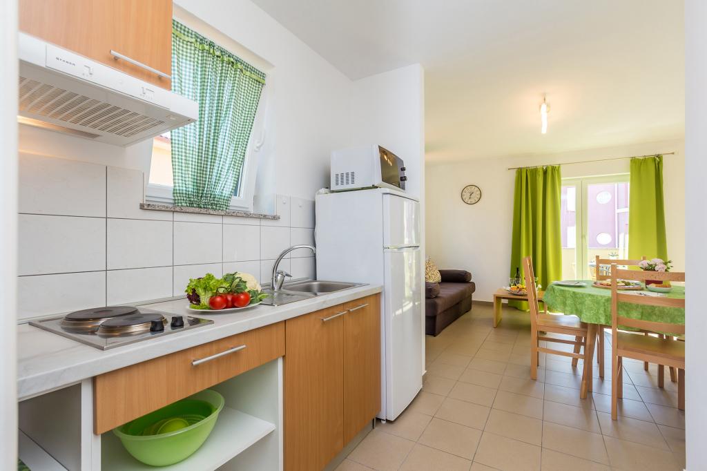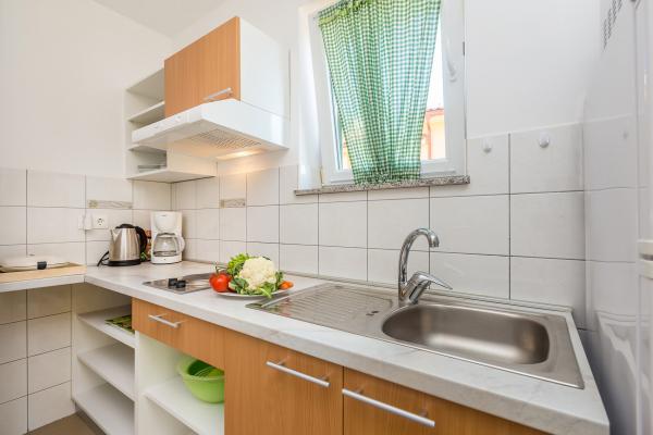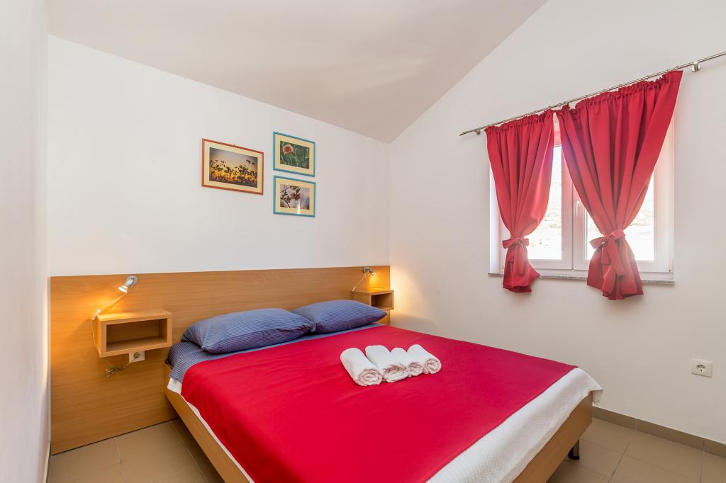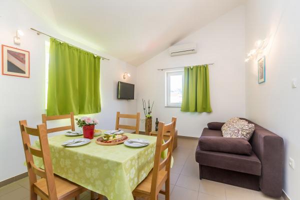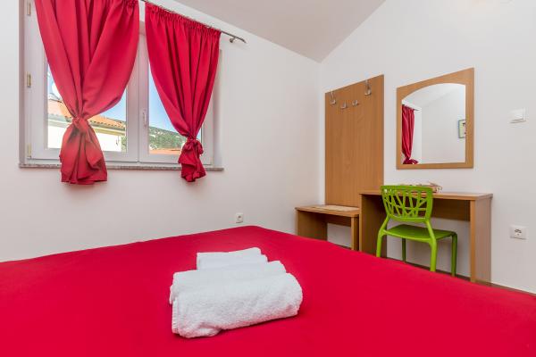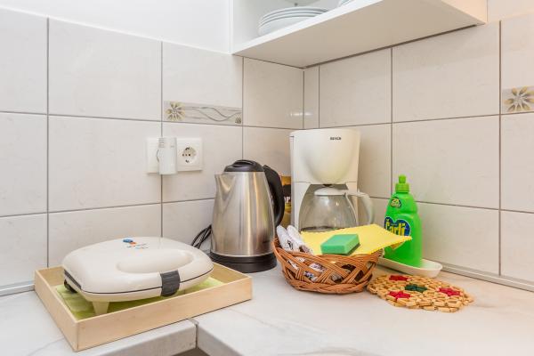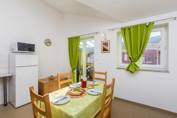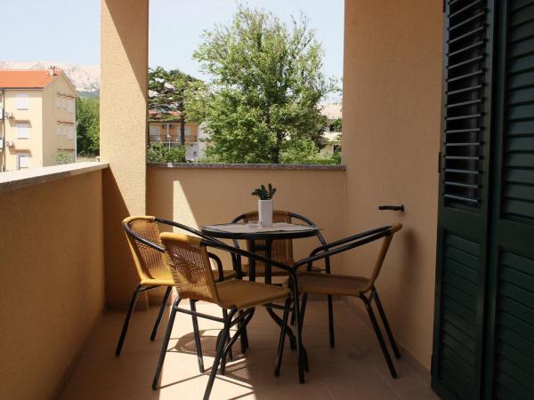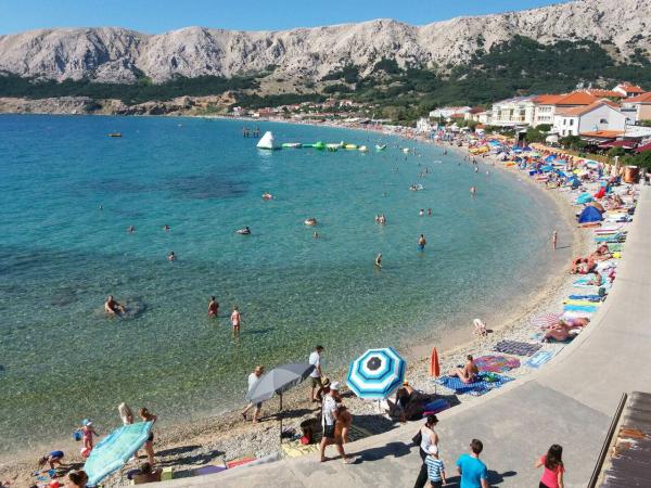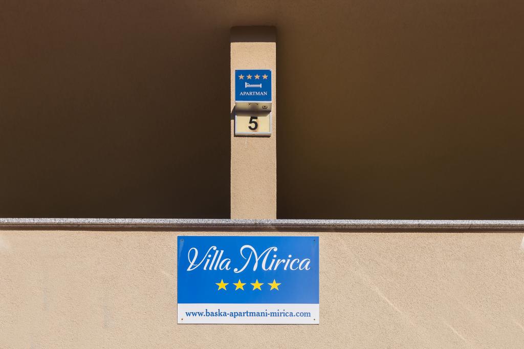 Vila Mirica 4 zvezdice - ima 4 moderne, popolnoma in sodobno opremljene apartmaje (2 in 2). Površina: 40 m² in 10 m2 pokrite zasebne terase v mirnem delu Baške s pogledom na vrt in mirno ulico. Objekt se nahaja 5 minut hoje od plaže Vela in vseh ugodnosti. Čudoviti apartmaji Mirica imajo eno dvoposteljno spalnico, kopalnico s tušem, sušilcem za lase, pralnim strojem in detergentom, kuhinjo s pomivalnim strojem, hladilnikom in sušilcem za lase, dnevno sobo z raztegljivim kavčem in 5 cm debelo nadvložko za udobje, likalno desko in likalnikom, opekačem kruha, grelnikom vode, mikrovalovno pečico, cvrtnikom na vroč zrak. En apartma lahko sprejme do 4 goste. Apartmaji so moderno opremljeni, z brezplačnim brezžičnim internetom, brezplačnim parkiriščem, pokritim s sončnimi paneli, klimatsko napravo, zasebno teraso, TV, SAT, sefom, posteljnino, brisačami. Vsi 4 naši apartmaji so enaki in enako opremljeni. Na parkirišču je na voljo brezplačna polnilna postaja za električna vozila - na zahtevo! Na vrtu je na voljo žar za goste. Otroška posteljica in otroški stolček sta na voljo na zahtevo.