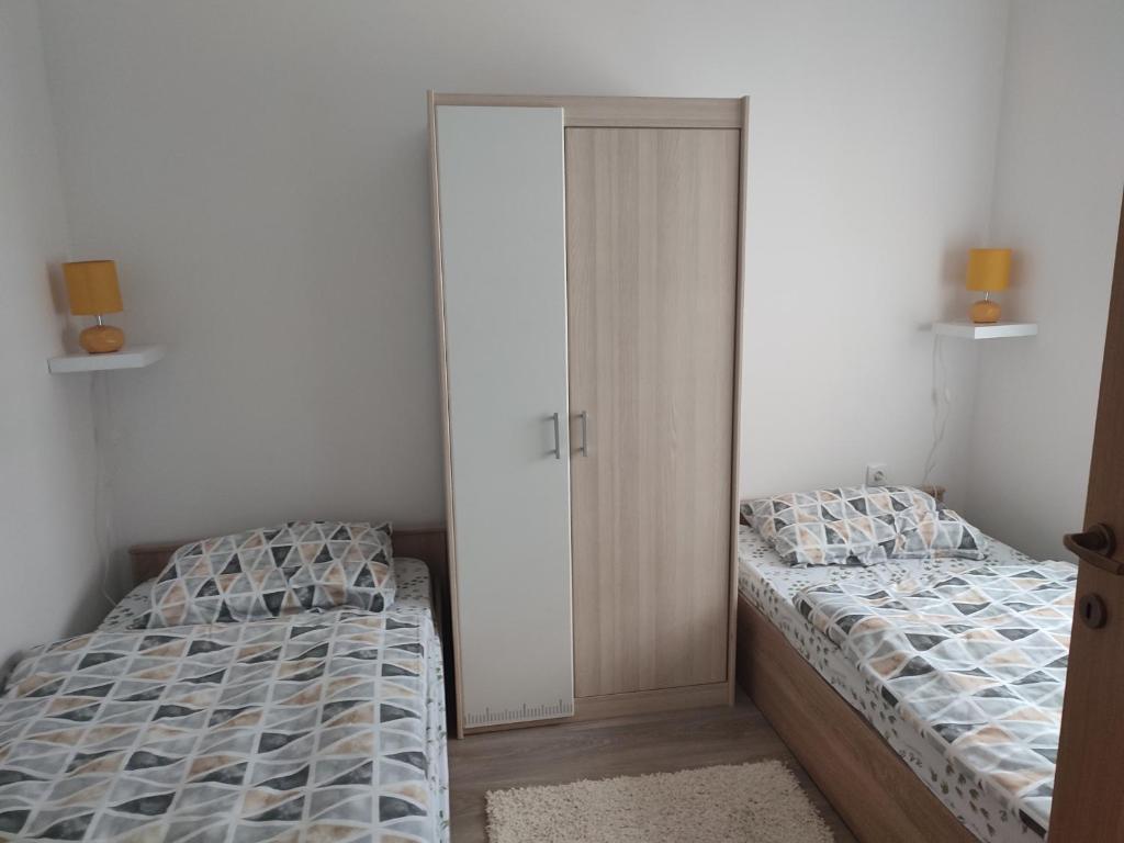 Klimatiziran apartma vključuje 2 spalnici, dnevno sobo, popolnoma opremljeno kuhinjo s hladilnikom in grelnikom za vodo ter 1 kopalnico s prho in sušilcem za lase. Apartma ima tudi prostor za sedenje, pralni stroj, ki je hkrati tudi sušilni stroj, wi-fi in parkirišče za vozilo v sklopu objekta, ima tudi teraso z žarom, ki je tudi prostor za kadilce, saj ni dovoljeno v stanovanju. V apartmaju ni gostitelja, zato imate na razpolago celotno stanovanje.
