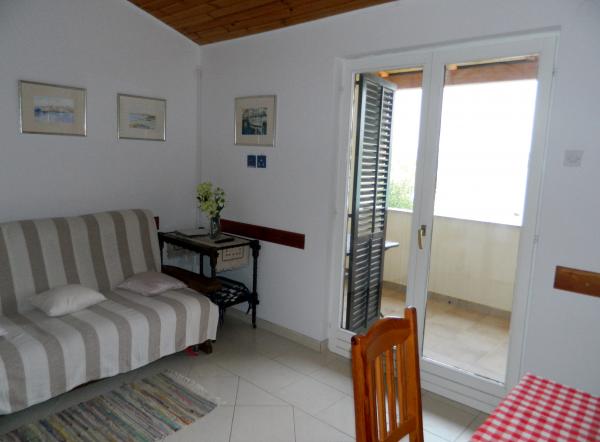Apartma je primeren za bivanje dveh parov ali štiričlanske družine. Apartma se nahaja v prvem nadstropju družinske hiše, prva vrsta do morja v Betini. Stanovanje je udobno in prostorno. Sestavljen je iz dveh spalnic, dnevne sobe, kuhinje in kopalnice. Vsaka soba ima dve postelji (zakonska postelja). V dnevni sobi je kavč, TV in brezžični dostop do interneta. Kuhinja je opremljena za pripravo obrokov (štedilnik, pečica, hladilnik, aparat za espresso kavo, grelnik vode, toaster, mešalnik, mikrovalovna pečica, jedilni pribor in posoda). Vsaka soba ima svojo klimatsko napravo. Dnevna soba ima izhod na veliko teraso s pogledom na morje. Na dvorišču za hišo je parkirišče za avto, zunanji tuš in zunanji žar. Pred hišo je plaža za kopanje in sončenje, senčniki in ležalniki. Mesto Betina je od apartmaja oddaljeno približno 800 metrov, 10 minut lahke hoje ob morju.