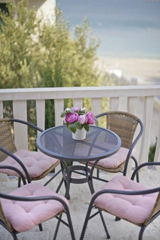 Malo ampak slatko.... Zelo čisto! Gazdarica zelo prijazna. Plaža resnično samo čez cesto! Velika terasa s pogledom na morje.