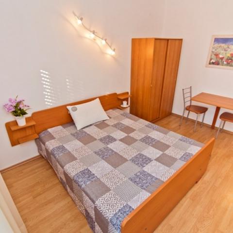 Apartmaji Studio Trica se nahajajo v 1. nadstropju hiše, 20 metrov od morja, razteza se peščena plaža, promenada in cesta. Idealne so za goste, ki se aktivno začnejo na dan. Stavba je v izgradnji in trenutno so na voljo štirje studio apartmaji. Vsi apartmaji so klimatizirani, imajo dostop do WIFI in so enako opremljeni. Studio apartma ima zakonsko posteljo (200x160cm), mini kuhinjo v sobi (štedilnik z dvema indukcijskima ploščama, umivalnik, kuhanje in jedilni pribor, hladilnik). Kopalnica je sestavljena iz kopalnih kadi in sanitarij. Na voljo je tudi velik balkon s pogledom na morje. Zasebno parkirišče pred hišo.