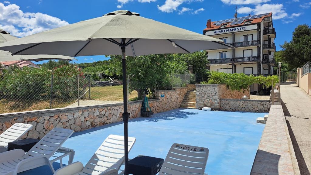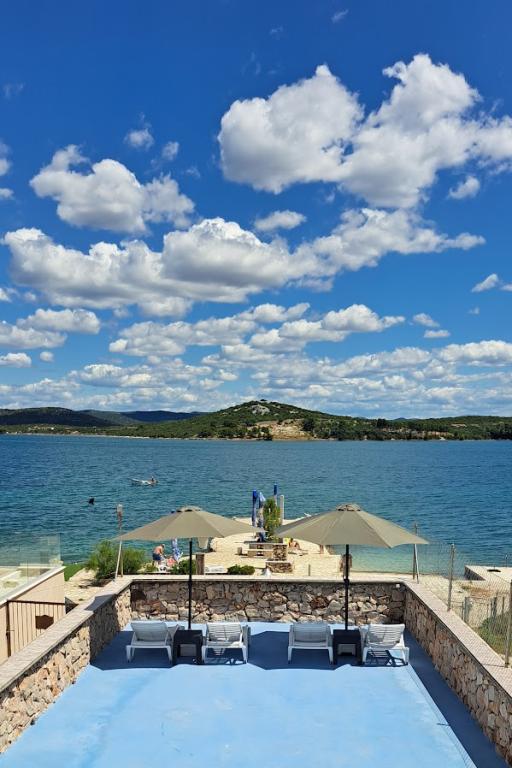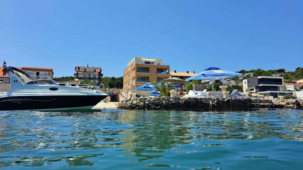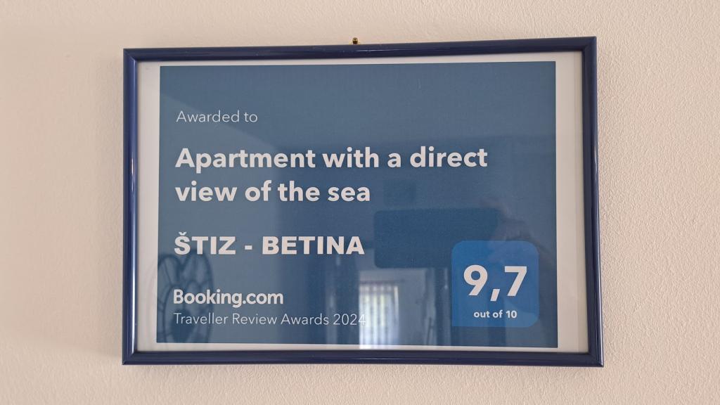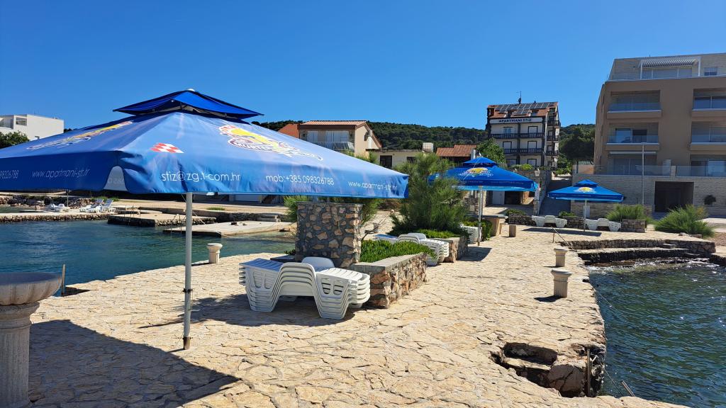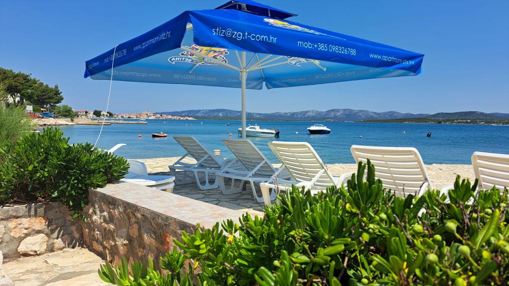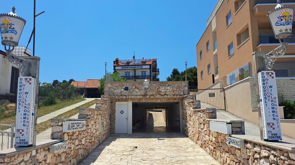 Apartmajska hiša ŠTIZ-BETINA – Vaše idealne počitnice ob morju! Apartmajska hiša ŠTIZ-BETINA se nahaja neposredno ob obali v Betini na otoku Murterju in ponuja popolno okolje za sproščujoče počitnice. Naša urejena kamnita plaža je opremljena z ležalniki in velikimi senčniki, ki jih lahko uporabljate brezplačno. Prihajate z ladjo? Ponujamo vam privez za čolne do 7 metrov, z varovanim parkiriščem za prikolico znotraj ograjenega dvorišča. Lokacija: Hiša se nahaja 1,5 km od središča Betine, kjer najdete staro mestno jedro, trgovine, kavarne, restavracije in glavno mestno plažo. Otok Murter je enostavno dostopen z avtomobilom, saj je s celino povezan z dvižnim mostom, ki se dvigne dvakrat na dan. Ponujamo: šest apartmajev (2+2) in štiri studie (2+1). Vsaka namestitvena enota vključuje: popolnoma opremljeno kuhinjo, klimatsko napravo, brezplačen Wi-Fi, SAT HDTV z ravnim zaslonom, stranišče s tušem, posteljnino in brisače. Vsi apartmaji in studii imajo čudovit pogled na morje in vrt.