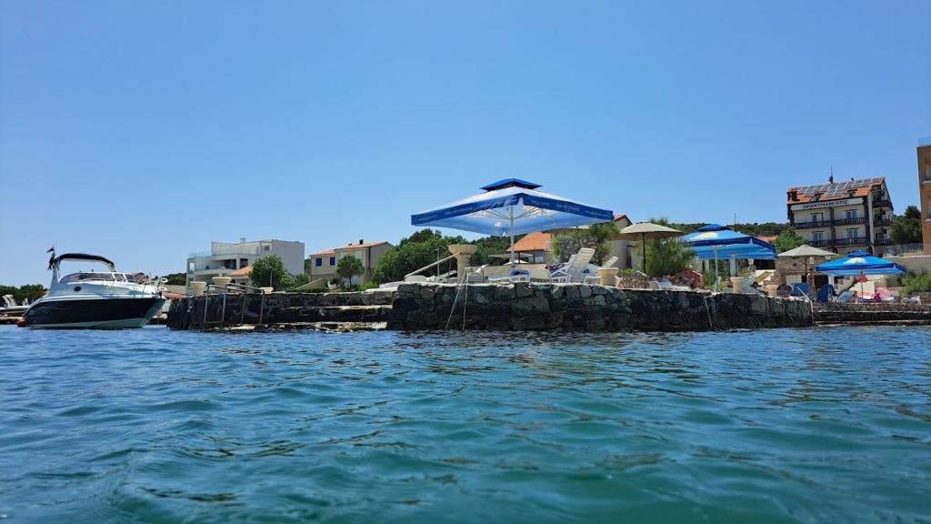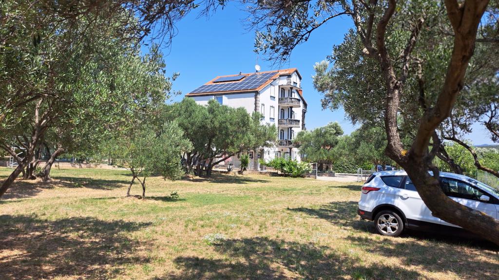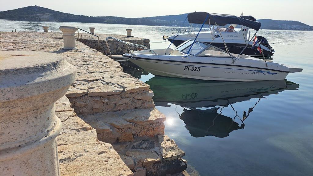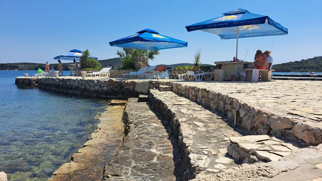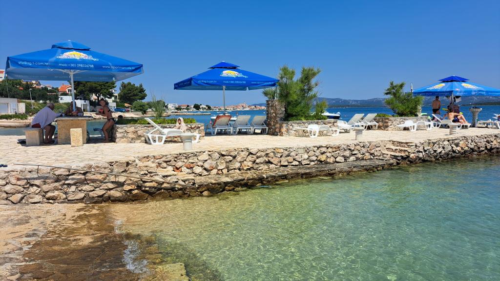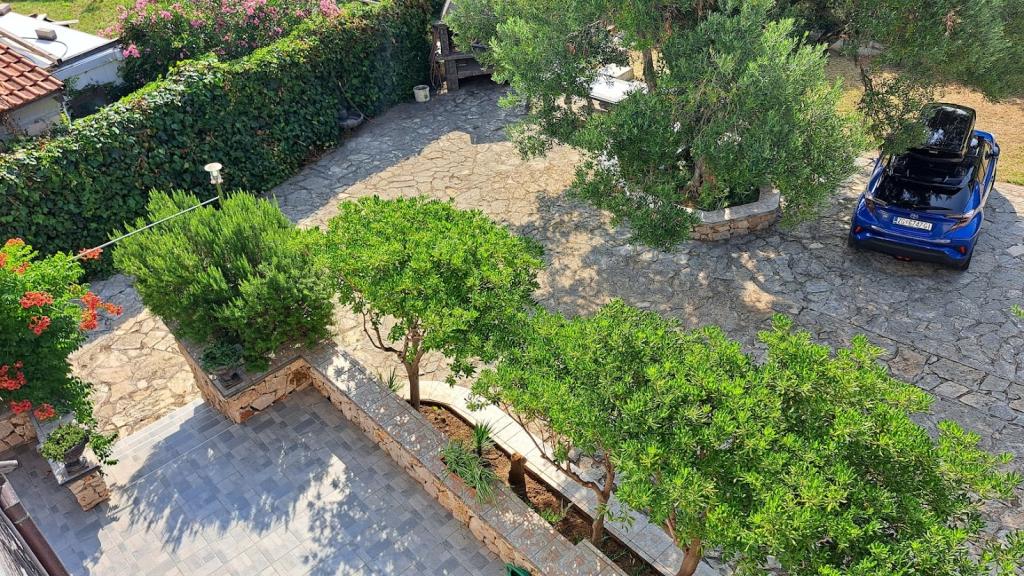 Turistična taksa je vključena v ceno.Urejena plaža in objekti za popoln užitek! Ni vam treba iskati idealnega mesta za kopanje - urejena plaža je tik pred našo hišo! Plaža je tlakovana z naravnim kamnom, v morju pa je droben pesek, ki omogoča enostaven in varen vstop v vodo. Na plaži lahko brezplačno uporabljate ležalnike in velike senčnike za sprostitev ob morju. Ob plaži je velika garaža s straniščem, kjer lahko pustite svojo opremo, kot so SUP, kajaki, deske za jadranje na deski, napihljivi čolni ... Za goste, ki prihajajo s čolnom (do 7 m), ponujamo možnost spuščanja neposredno na naši plaži. Čoln lahko privežete ob obali ali na bojo, znotraj ograjenega dvorišča pa je tudi veliko parkirišče za avto in prikolico. Na našem zelenem vrtu vas čaka velik žar s popolno opremo za pripravo okusnih obrokov, ki vam je na voljo. Poleg tega vas ob prihodu čaka pijača dobrodošlice.