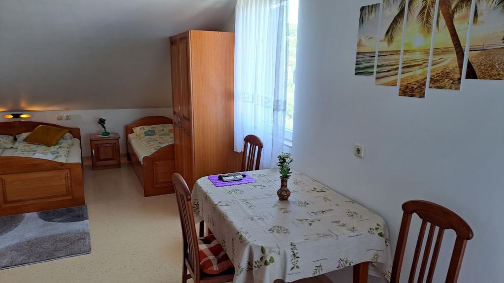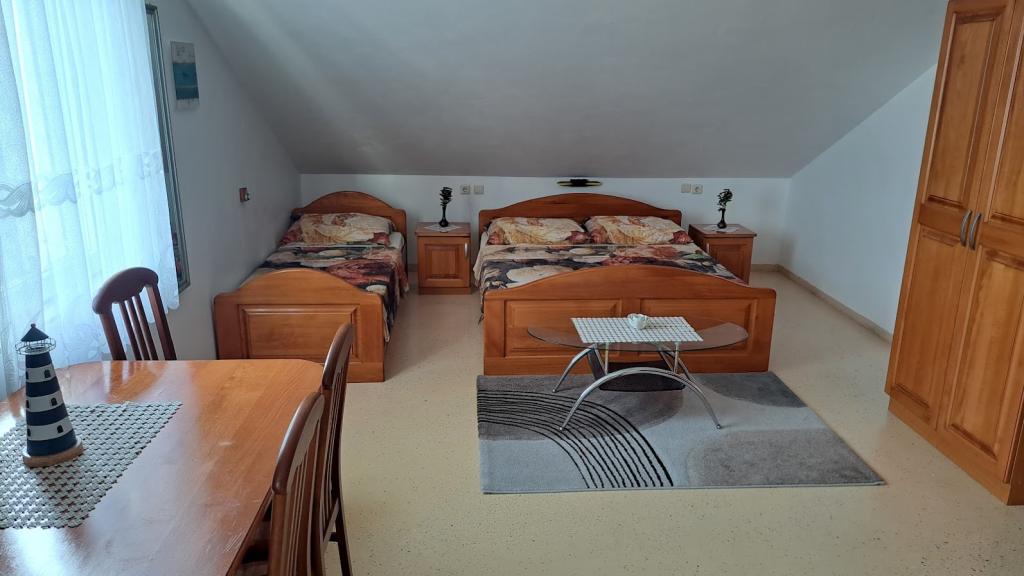 Preberite več Namestitvene enoteDoplačilo za hišne ljubljenčke (sprejemamo samo pse majhnih pasem): 5 €/noč v juniju in septembru, 7 €/noč v juliju in avgustu. Čas prihoda: od 14.00. Čas odhoda: do 10.00. Za zagotovitev rezervacije je potrebno plačilo akontacije v višini 20 % celotne cene namestitve. Akontacija služi kot jamstvo za vašo rezervacijo. Preostali znesek plačate v gotovini (evri) na dan prihoda. Bančni račun za plačilo akontacije: IBAN: HR 90 2340 0093 1108 6000 1 SWIFT (BIC) naslov: PBZGHR2X Banka: PRIVREDNA BANKA ZAGREB dd Naslov: Račkoga 6, Hr-10000 Zagreb, Hrvaška Za dodatne informacije ali rezervacije nas kontaktirajte še danes in si zagotovite mesto v tem malem raju!