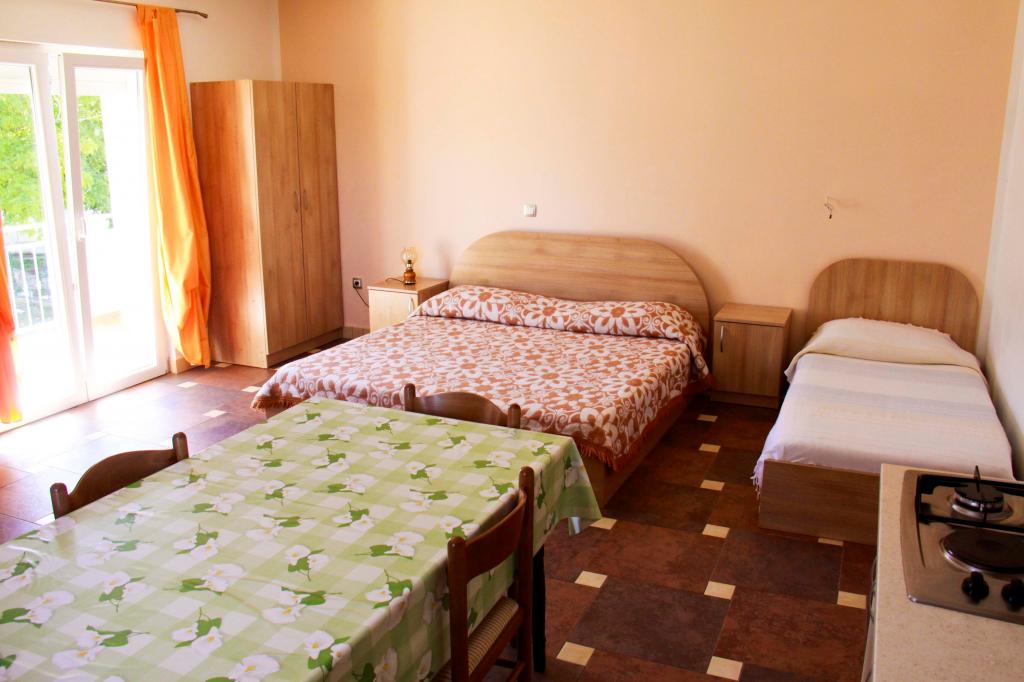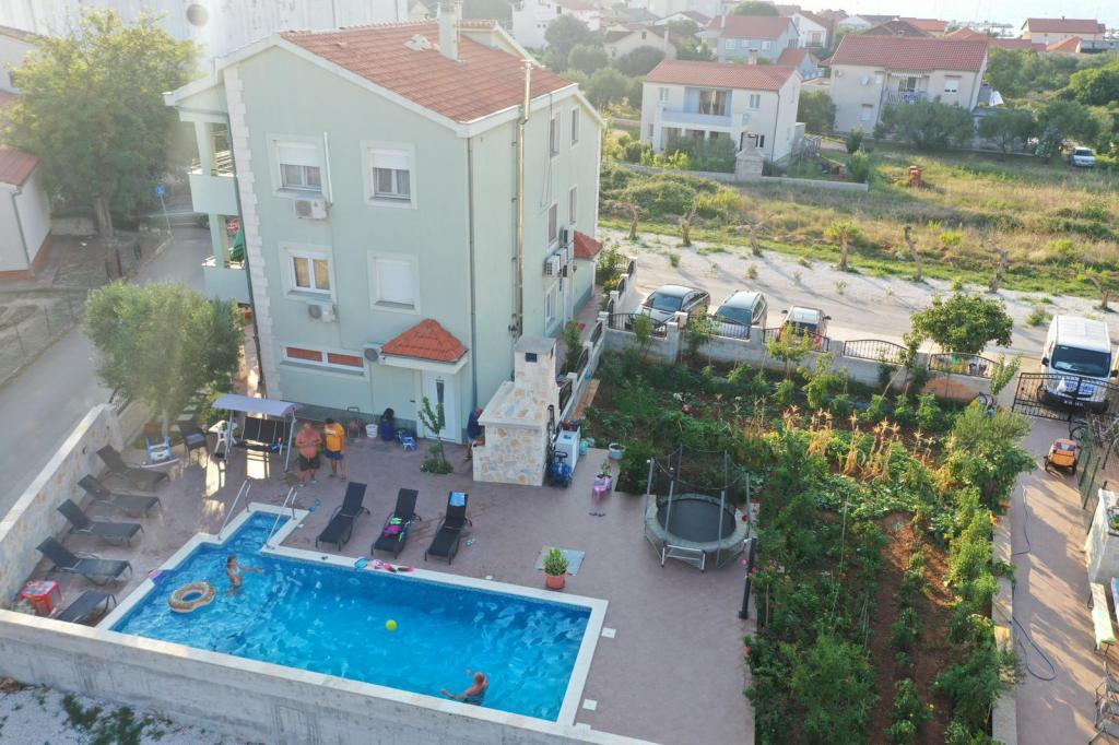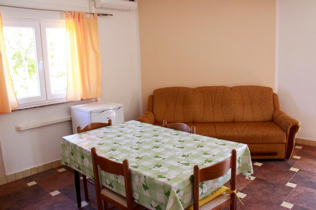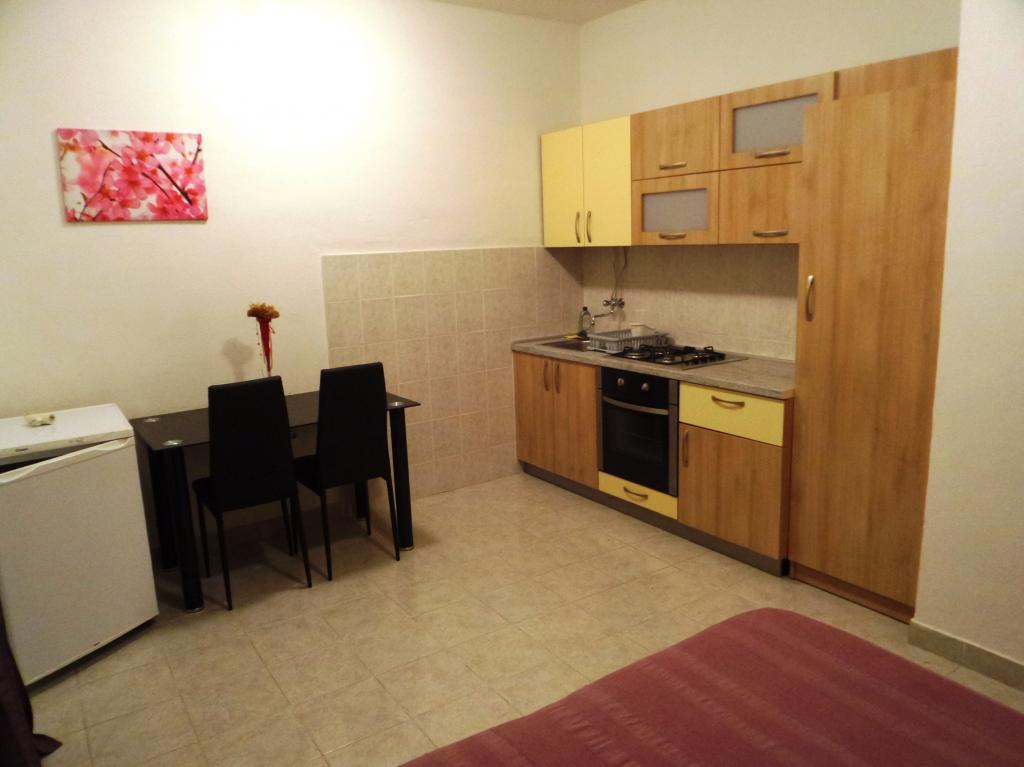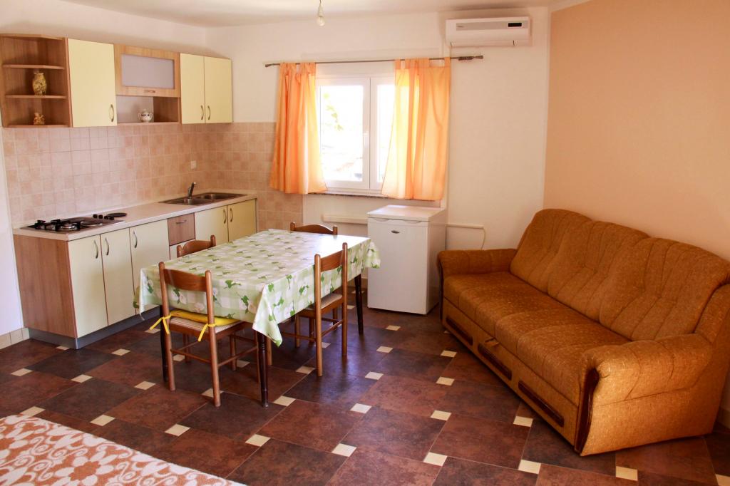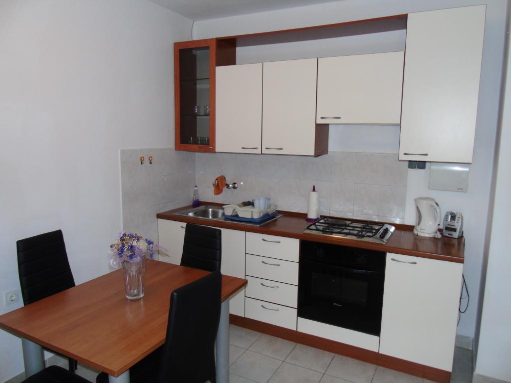 Oddam popolnoma opremljeno stanovanje, ki je sestavljeno iz dnevne sobe s kuhinjo z vso potrebno posodo, kuhalno ploščo, jedilno mizo in sedeži, hladilnikom. Vsak apartma ima lastno kopalnico s prho in se nahaja v notranjosti apartmaja. Apartmaji so opremljeni s klimatsko napravo in TV. Brezplačna uporaba interneta. Brezplačno parkirišče pred stavbo. Uporaba terase pred apartmajem z mizo in sedeži. Možnost ugodnega taxi prevoza do in iz apartmaja (60kn/osebo, min dve osebi). Bazen je na voljo od 01.06.-15.09.