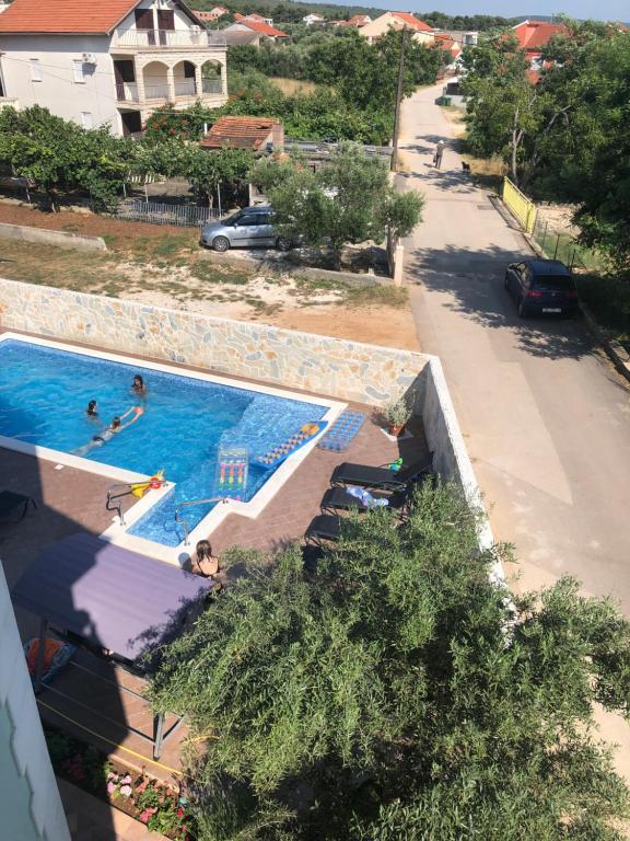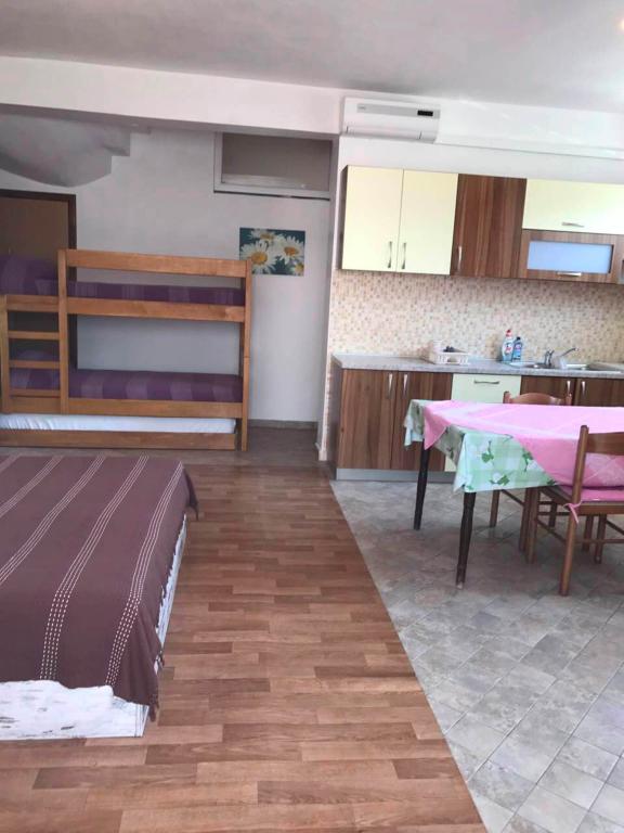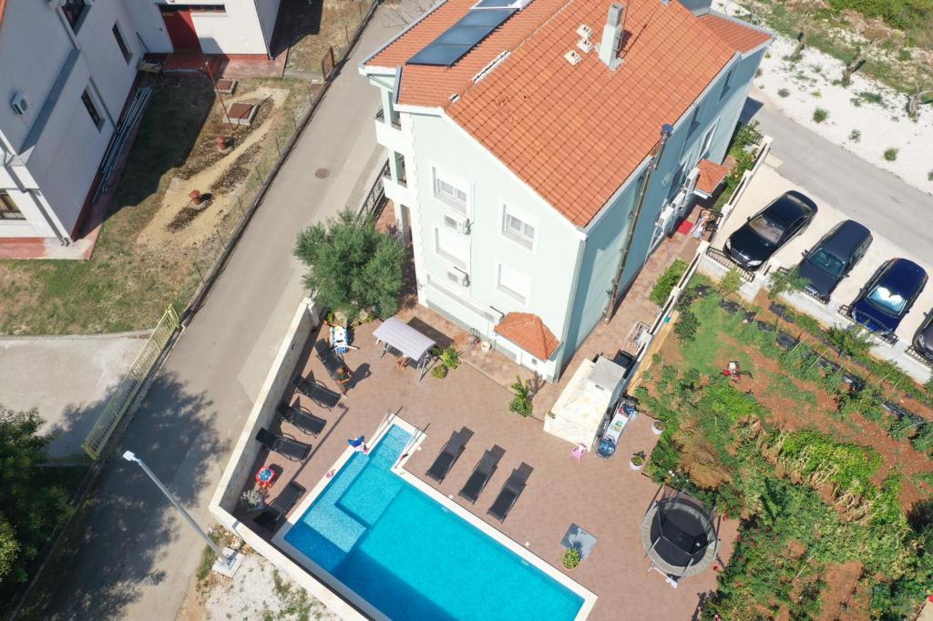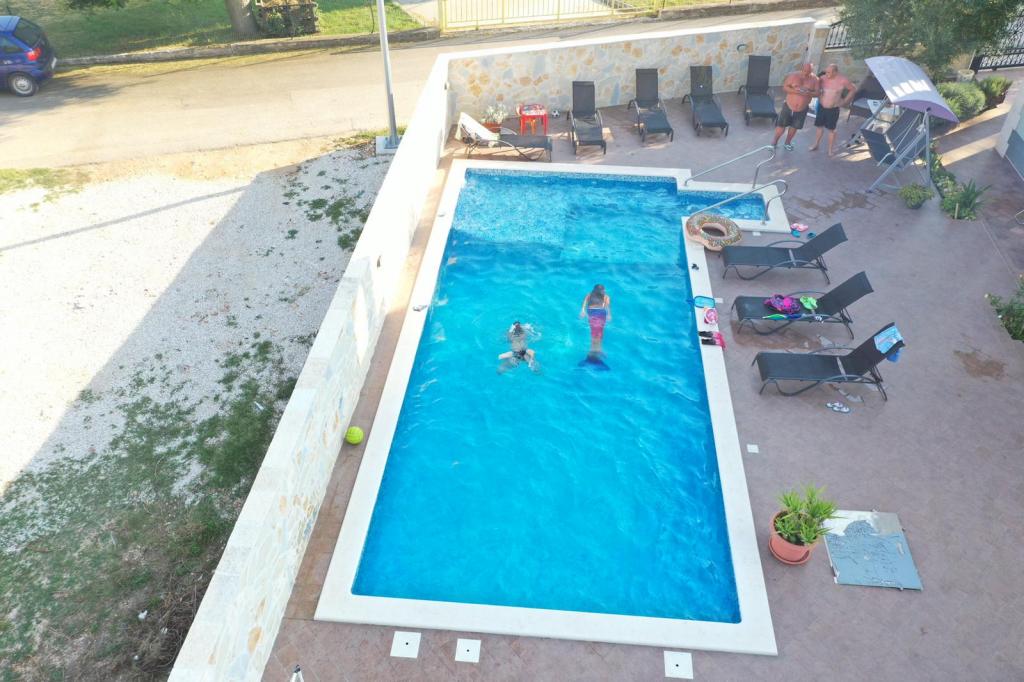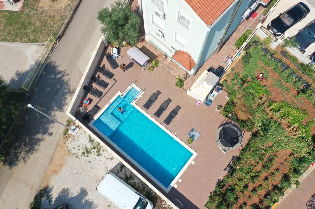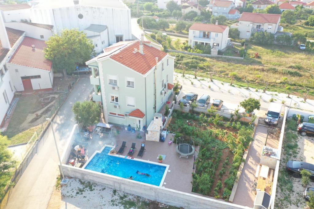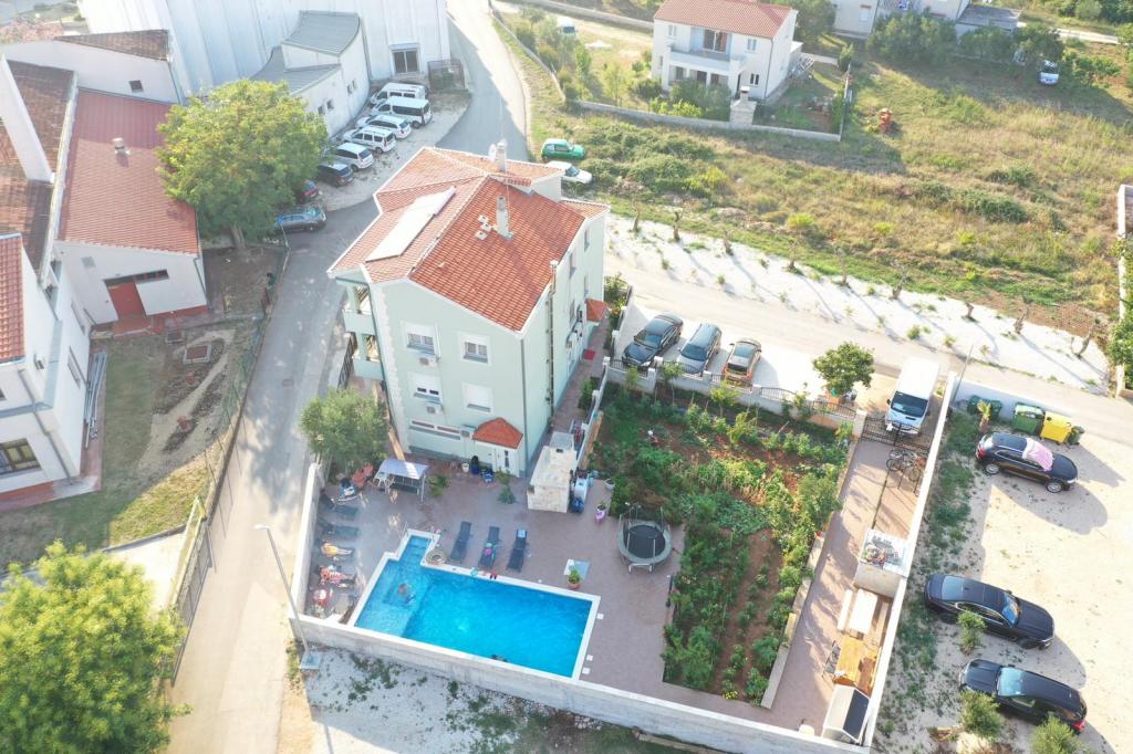 Oddam popolnoma opremljeno stanovanje, ki je sestavljeno iz dnevne sobe s kuhinjo z vso potrebno posodo, kuhalno ploščo, jedilno mizo in sedeži, hladilnikom. Vsak apartma ima lastno kopalnico s prho in se nahaja v notranjosti apartmaja. Apartmaji so opremljeni s klimatsko napravo in TV. Brezplačna uporaba interneta. Brezplačno parkirišče pred stavbo. Uporaba terase pred apartmajem z mizo in sedeži. Možnost ugodnega taxi prevoza do in iz apartmaja (60kn/osebo, min dve osebi). Bazen je na voljo od 01.06.-15.09.