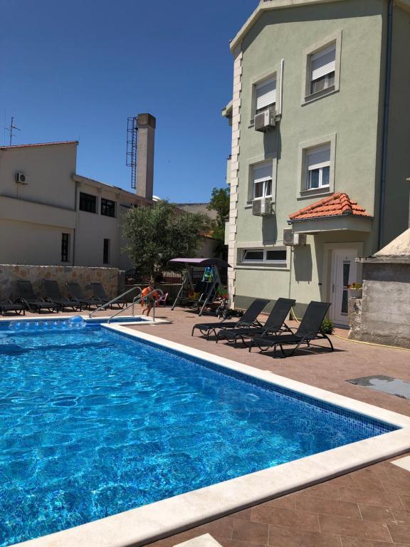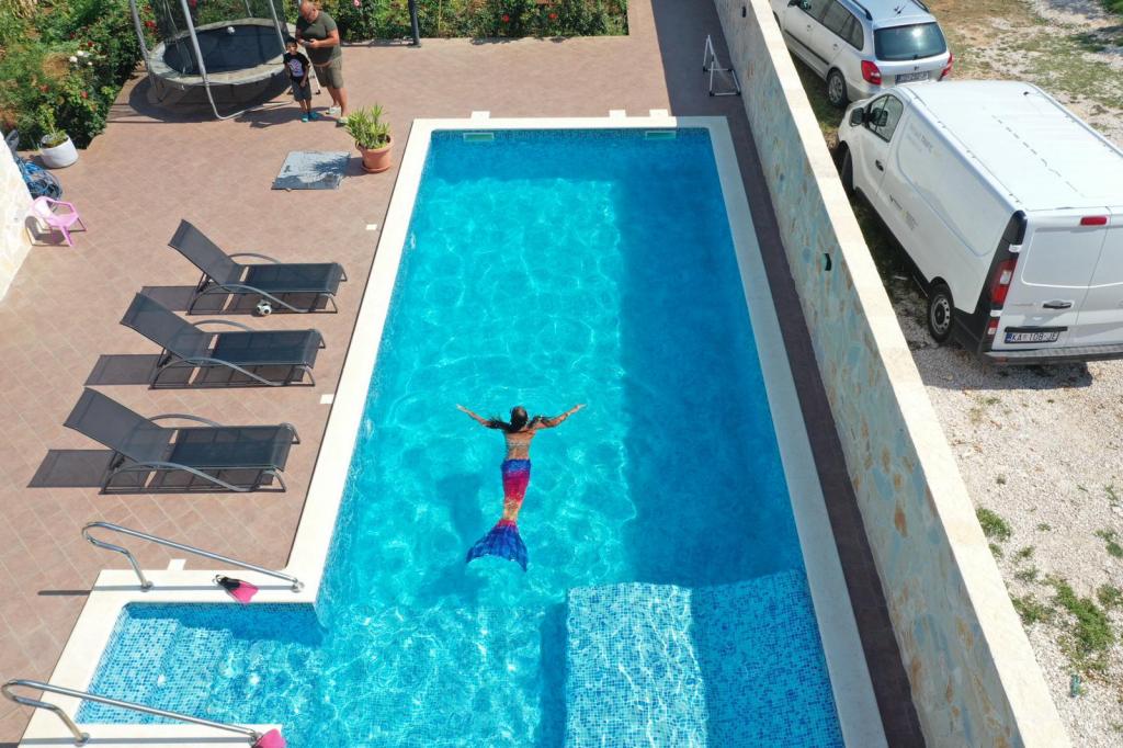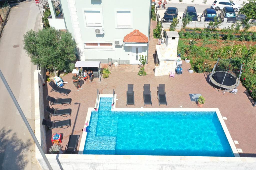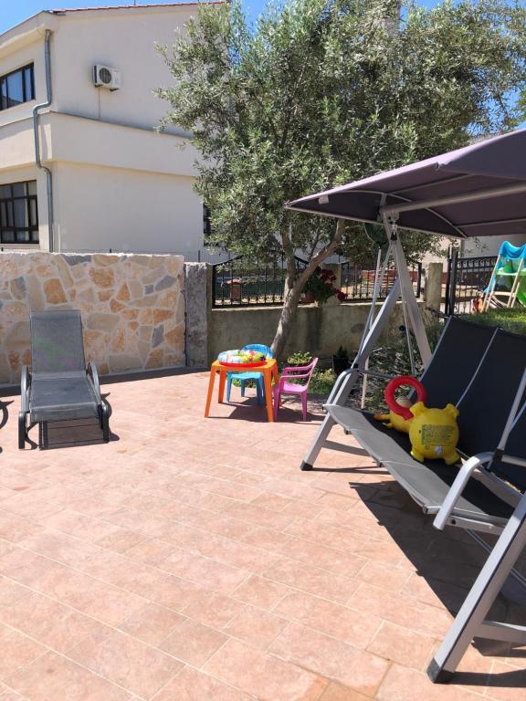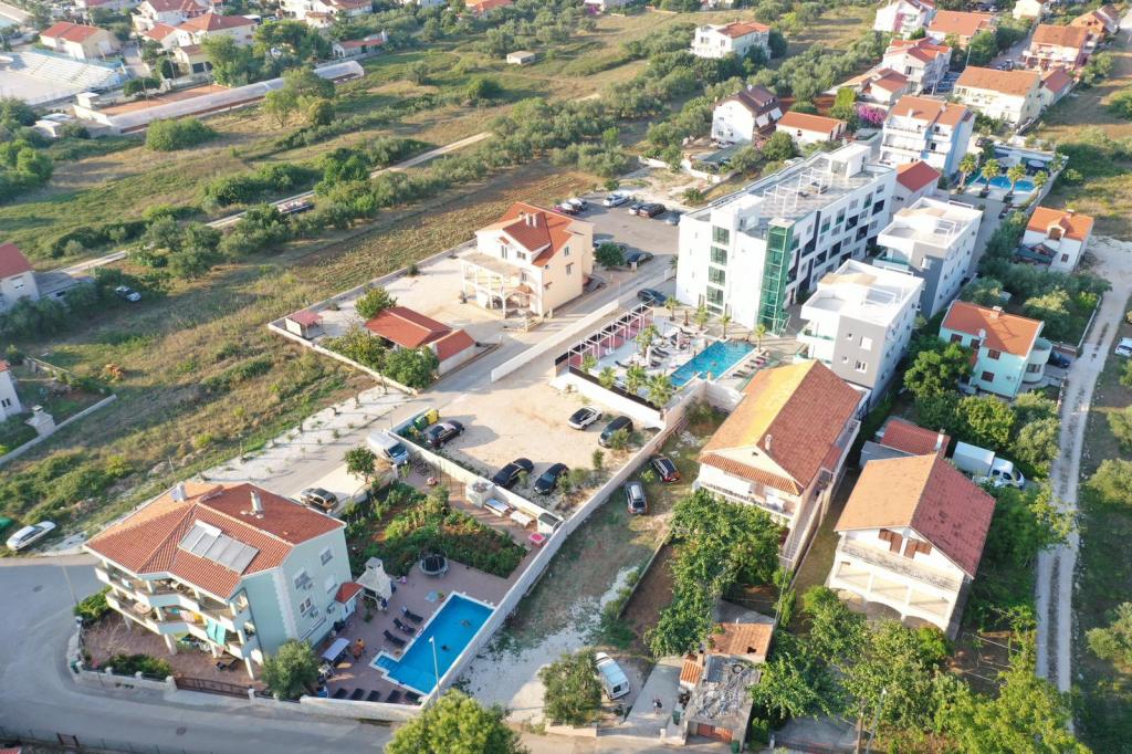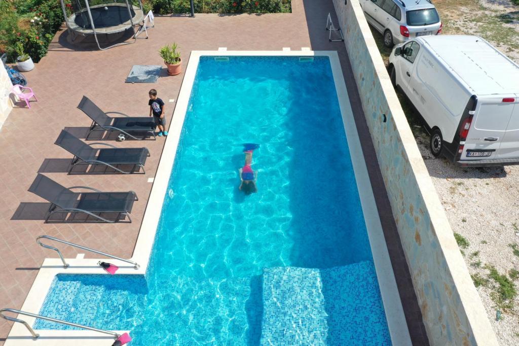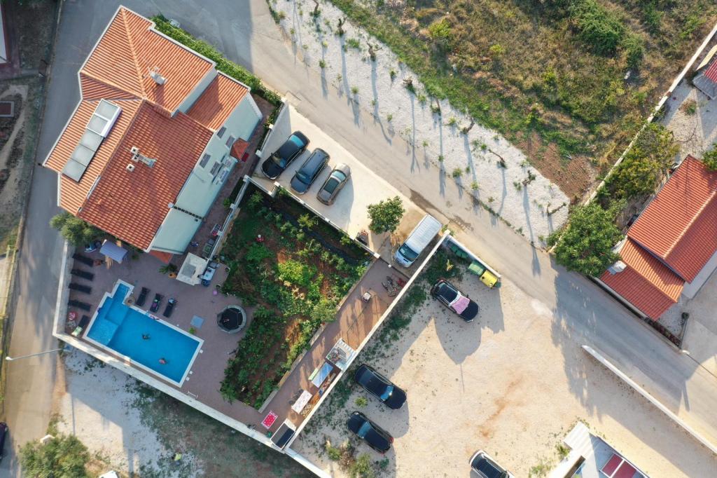Oddam popolnoma opremljeno stanovanje, ki je sestavljeno iz dnevne sobe s kuhinjo z vso potrebno posodo, kuhalno ploščo, jedilno mizo in sedeži, hladilnikom. Vsak apartma ima lastno kopalnico s prho in se nahaja v notranjosti apartmaja. Apartmaji so opremljeni s klimatsko napravo in TV. Brezplačna uporaba interneta. Brezplačno parkirišče pred stavbo. Uporaba terase pred apartmajem z mizo in sedeži. Možnost ugodnega taxi prevoza do in iz apartmaja (60kn/osebo, min dve osebi). Bazen je na voljo od 01.06.-15.09.
