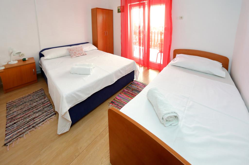 Apartmaji imajo kuhinjo z jedilnico, kopalnico in 2 spalnici. V eni sobi je zakonska postelja, v drugi pa zakonska in enojna postelja. Opremljene so z mikrovalovno pečico, grelnikom vode, mešalnikom za palice, sušilcem za lase, likalnikom in aparatom za kavo. Na dvorišču s pokritim parkiriščem so tudi 3 žara za goste. Pred ap. je velika pokrita terasa s 4 mizami. Do prve trgovine je 100 m, do velikih trgovskih centrov pa 4 km (Lidl, Kaufland, Plodine, Konzum, Pevec). Do Zadra je 5 km. Obstaja 350 m plaža z betonom, prodniki in gozdovi, ter pesek v morju (primeren za majhne otroke). Letališče Zemunik-Zadar je oddaljeno 12 km, avtobusna postaja Zadar pa 5 km. Apartmaji so oddaljeni od prve avtobusne postaje 200 m.