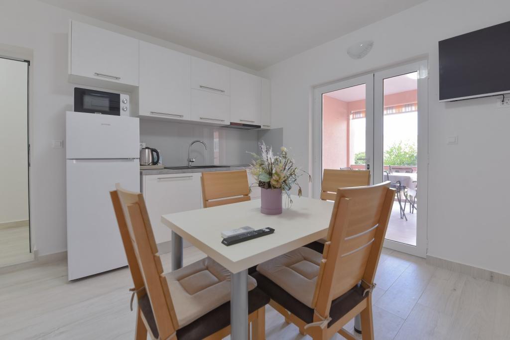 Čestitke družini Frleti! Sprejeli so nas toplo in prijazno. Apartma je bil urejen, čist, opremljen s posodo, posteljnino, TV, klimo in WiFi. Tako kot je na slikah, tako je tudi v resnici. Apartma je prostoren, lepo opremljen, postelje udobne za spanje. Ima veliko teraso s tendo, s katere lahko uživate v pogledu na mediteranski vrt družine Frlete. Veliko število urejenih plaž s čistim modrim morjem in lepo urejenimi promenadami ob morju z velikim številom restavracij in barov. Idealen za pobeg od hrupa in vsakdana. Mir, tišina ob zvoku čričkov, kriku galebov in šumu morja. Čisti hedonizem!