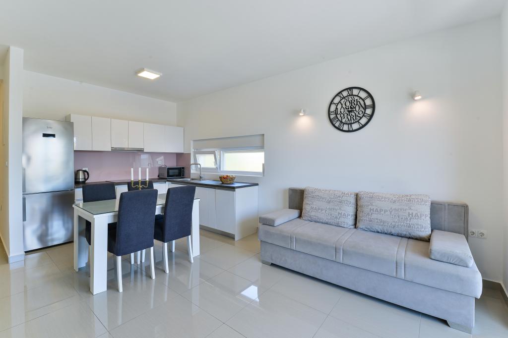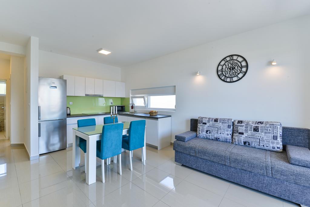 Apartmaji Fabian se nahajajo v turističnem območju Bibinje, imenovanem "Kraj Punta". Objekt je oddaljen 20 metrov od morja, od koder se razprostira čudovit razgled na Jadransko morje in dalmatinske otoke. Oddaljenost od starodavnega mesta Zadar je 10 minut vožnje z avtomobilom, kjer je več velikih nakupovalnih središč. V radiju 30 km se nahajajo trije narodni parki: NP Paklenica, NP Kornati, NP Krka. Organizirani so tudi izleti v narodni park z odhodom iz Bibinje ali Zadra. Vse namestitvene enote so klimatizirane, opremljene z lastno kopalnico, teraso, pametnim televizorjem diagonale 140 cm s satelitskimi programi, sobnim televizorjem diagonale 110 cm, opremljeno kuhinjo s pomivalnim strojem. Najbližja restavracija in trgovina sta oddaljeni 150 m od objekta. Kavarna in koktajl bar sta oddaljena 50 m. Plaža je oddaljena 20 m od objekta, na plaži pa si lahko gostje izposodijo vodni skuter, jadrajo na deski ali igrajo odbojko na mivki. Objekt vključuje brezplačen WIFI internet, brezplačno parkiranje. Za prijetne poletne počitnice s sončnimi žarki in vonjem po morju, Apartmaji Fabian