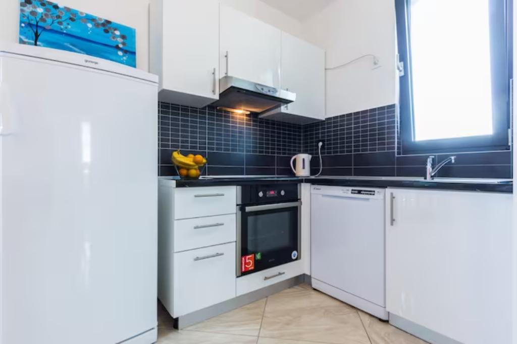 V Bibinjah smo ostali en teden z našima 2 najstnikoma. Lokacija apartmaja tik ob morju je odlična. Priti do tja z Googlom deluje dobro, vendar na vratih žal ni hišne številke, zato sprva mislite, da ste na napačnem mestu. Stanovanje je dovolj veliko in relativno moderno. Postelje so nove in udobne. Na žalost manjka nekaj malenkosti. Brisač v kopalnici ni mogoče obesiti. Pomagalo bi nekaj stenskih kavljev. V enem je manjkalo tudi držalo za toaletni papir. Na splošno ni prostora za shranjevanje ali pa je bila edina majhna polica tako ohlapna, da nanjo niste mogli ničesar postaviti. Kuhinja je precej majhna, vendar ima pomivalni stroj. Morda bo treba zamenjati ponve (indukcijski štedilnik, niso vse ponve primerne za to) in odstraniti vodni kamen iz aparata za kavo. Na žalost ne gre tako. Na splošno so bile počitnice lepe in morda se še vrnemo. Restavracije so dosegljive peš, do pekarne ali majhnega supermarketa pa ni daleč.