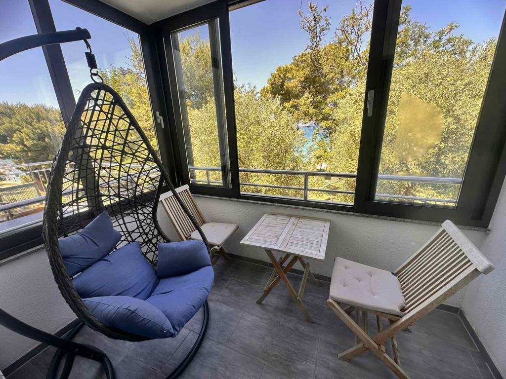 Luksuzni apartmaji se nahajajo neposredno na plaži s čudovitim pogledom na morje in velikim bazenom v skupnem prostoru. Sobe so udobne in elegantno opremljene, vsaka ima svojo kopalnico. Postelje so nove z vrhunskimi ergonomskimi vzmetnicami in vzglavniki. Kuhinje so opremljene s sodobnimi aparati, vse imajo pomivalni stroj in ostalo, kar gost potrebuje za pripravo hrane. Vsi apartmaji imajo zasebne balkone s pogledom na morje in plažo, kjer gostje lahko uživajo v jutranjih in večernih urah. Apartmaji so idealni za tiste, ki iščejo popolno udobje in so kot nalašč za družino ali prijatelje, ki želijo uživati v sproščenem obmorskem okolju.