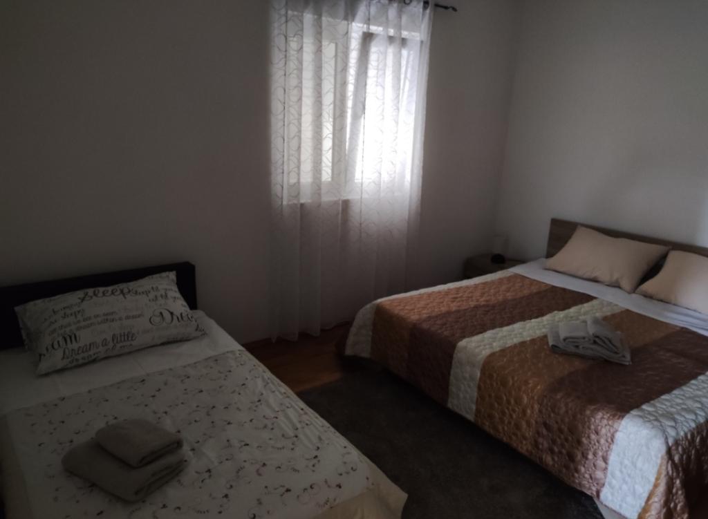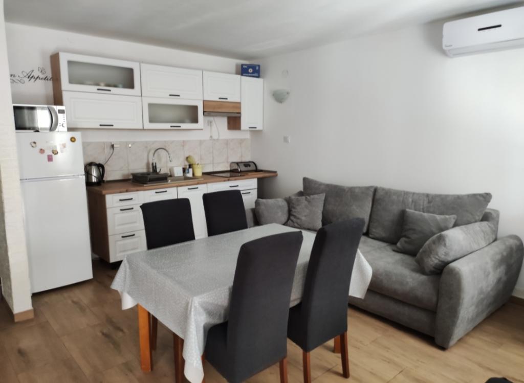 Popolnoma opremljeni apartmaji v mirnem delu Bibinja. Nudimo dvosobni apartma 4+2 in enosobno stanovanje 2+2, ki sta v pritličju oddaljena od plaže 150 m, do prve trgovine pa 80 m , restavracije, trgovine itd. Vse lahko preprosto obiščete s hojo. V vasi se lahko dogovorite za izlet na Kornate, slapove Krke, Plitvička jezera...