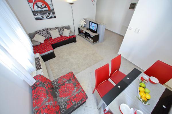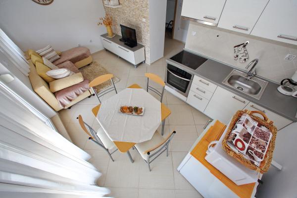 Zelo dobro opremljen studio! Apartma je čist, notranjost je moderna in udobna. Velika terasa s pogledom na marino. Apartma je na zelo dobri lokaciji, le nekaj minut od plaže, nakupovanja in... Slike na spletni strani natančno prikazujejo, kako v resnici izgleda. Zelo priporočljivo!!!