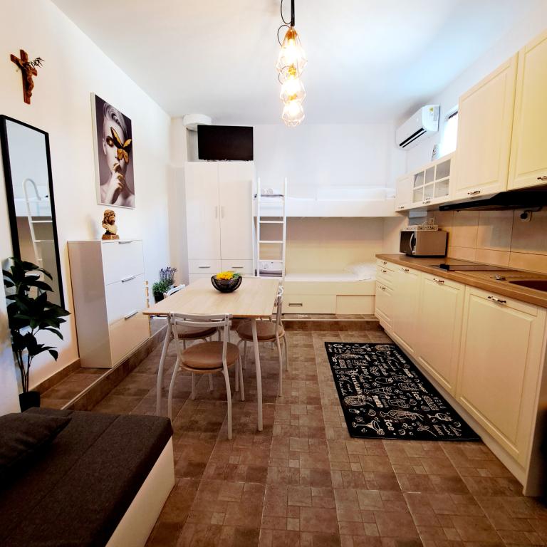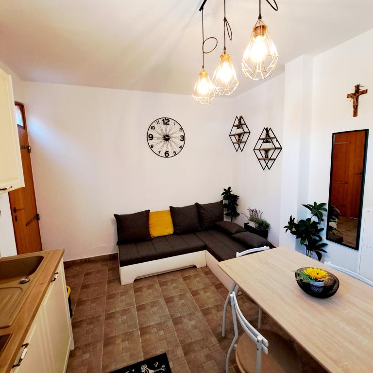 Lepo stanovanje, vse zelo čisto in urejeno. Velika terasa, dvorišče, senca in mir. Do plaže 2 minuti. In gostitelji so zelo prijazni, vedno na uslugo, gostoljubni, čudoviti. Počutili smo se kot doma, obkroženi s svojimi dragimi prijatelji. Apartmaje in gostitelje priporočamo vsem, ki želijo uživati v miru, a hkrati biti blizu morja.