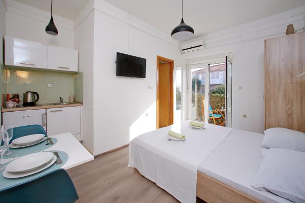 Studio z vsem, kar potrebujete za čudovit dopust. Čudovita plaža pred apartmajem in zelo prijazna gospa Suzy. Vsa priporočila za miren dopust.