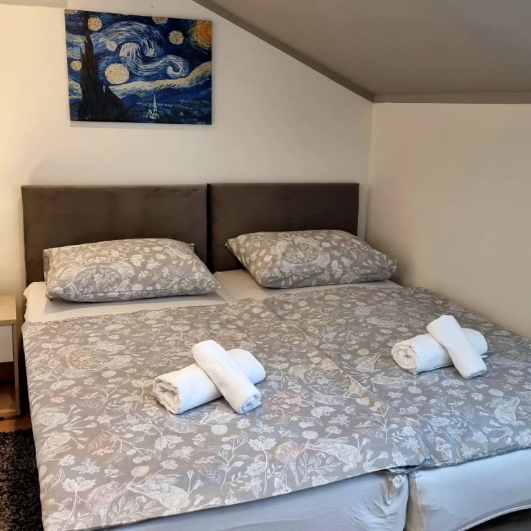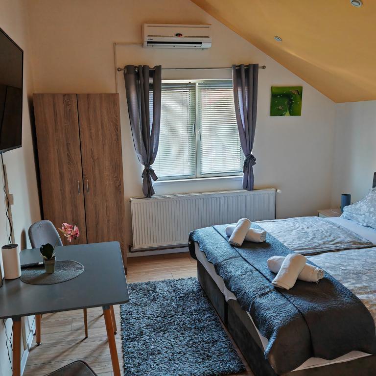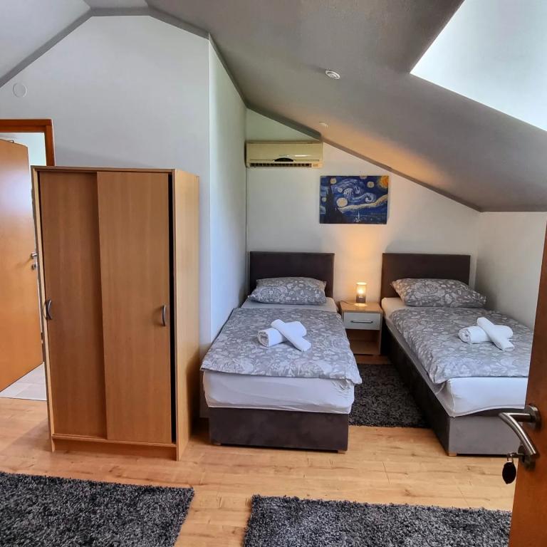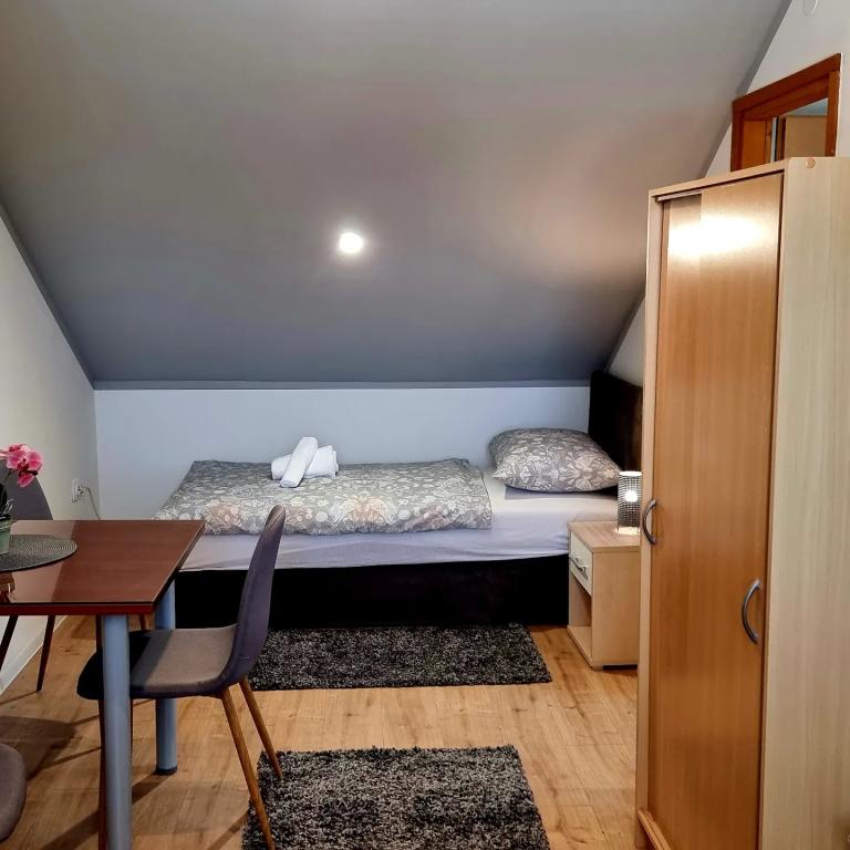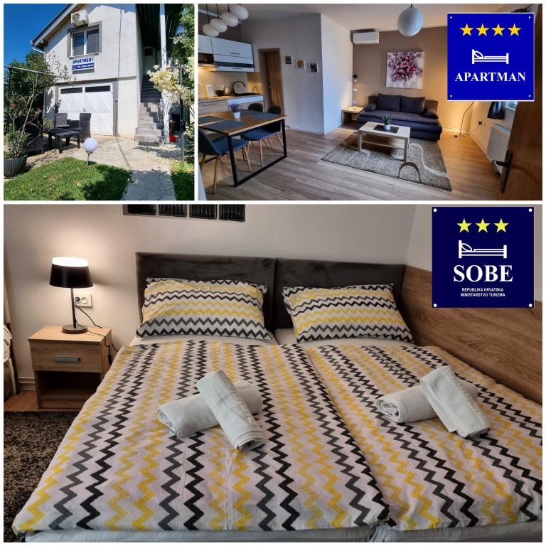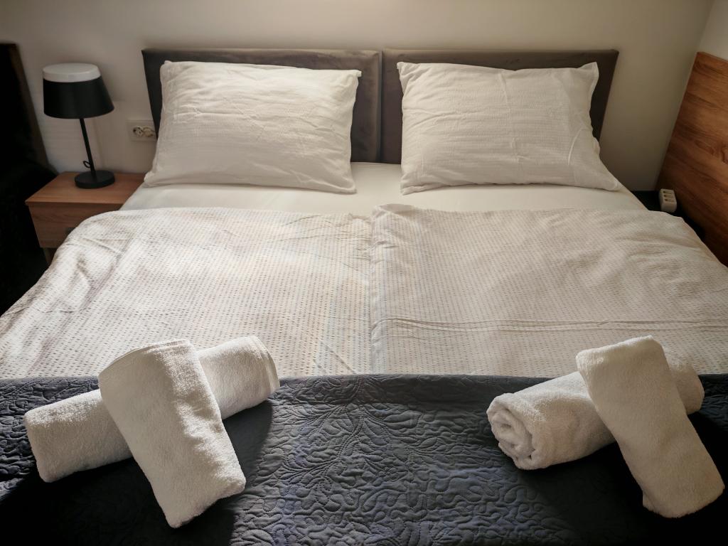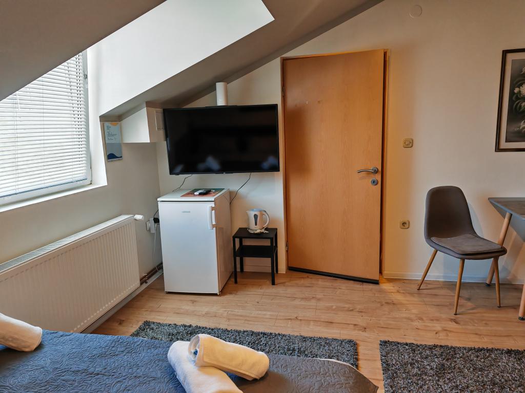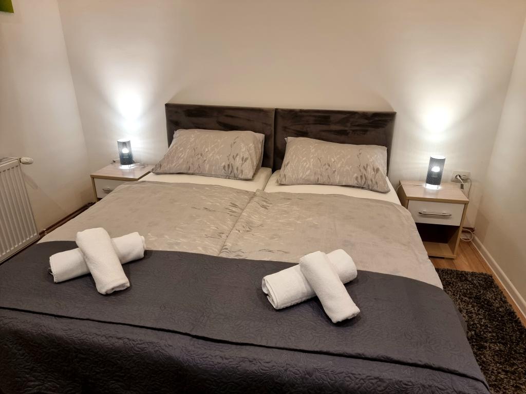 Privatna namestitev Corina, moderno in udobno opremljene sobe in apartma v mirnem mestu Bilje, predmestju Osijeka, 3 km od naravnega parka Kopački rit in 5 km od mesta Osijek (Tvrđe). lahko uživajo v blagodatih narave in se prebujajo ob vonju svežega cvetja in žvrgolenju ptic. Soba (dvoposteljna 23 m2) Značilnosti sobe: - pogled na vrt - SMART TV 126 cm (internetna televizija, Netflix) - klima - likalnik - jedilna miza z dvema stoloma - centralno ogrevanje - mreža proti komarjem - garderobna omara - kopalnica s tušem in WC-jem - sušilec za lase - brezplačen toaletni pribor - posteljnina - brezplačen wi-fi internet. Triposteljna soba (25 m2) Značilnosti sobe: - pogled na vrt - SMART TV 110 cm (internet televizija, Netflix) - klima - likalnik - jedilna miza z dvema stoloma - centralno ogrevanje - mreža proti komarjem - kopalnica s tušem in WC Apartma 46 M2 vrt pogled - SMART TV 120 cm (internet televizija-dnevna soba) Smart TV 126 cm spalnica pralni stroj